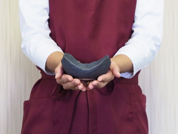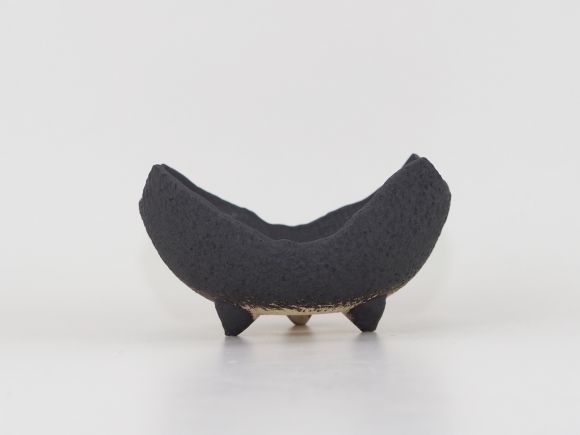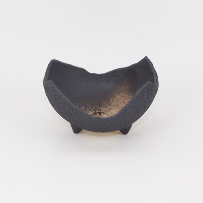 どんな風に使おうかなと見立ての精神が育まれそうな個性豊かな鉢 万古焼 黒 3.5型 舟型 幅11cm×奥行10cm×高さ6.5cm