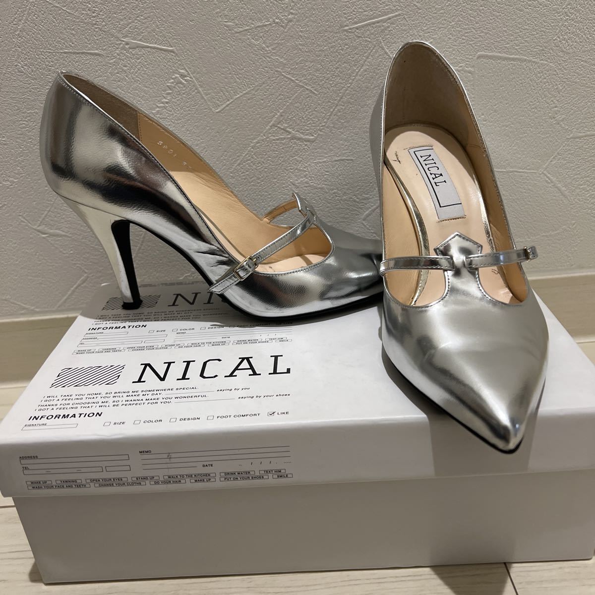 美品 NICAL パンプス シルバー ハイヒール ストラップパンプス レディース オリエンタルトラフィック 37 23.5 メタリックヒールパンプス
