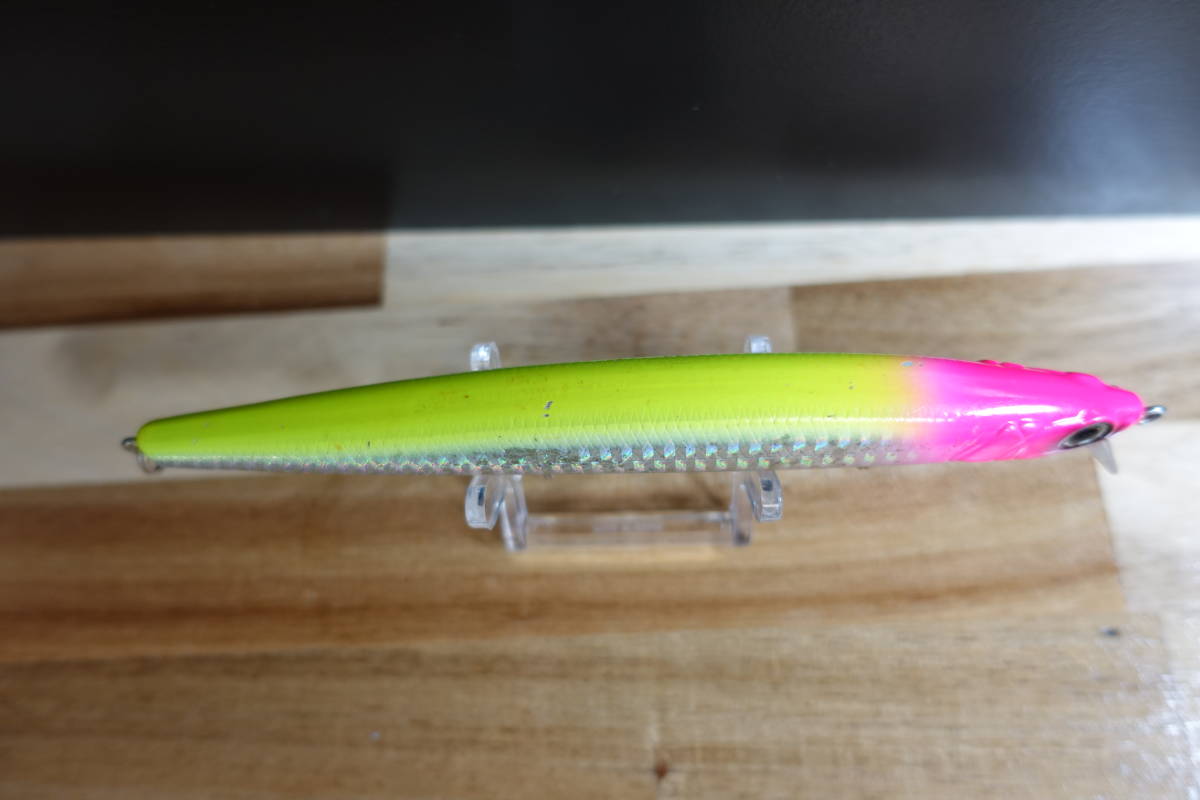 | お調べしておりますがルアーの正式名称、カラー名、状態は写真でご確認お願いいたします。 気になる点があれば記載させていただきます。 フックなしです。さびあります。背中の文字が消えかかってます。 size:約15cm gram:約28g 注意事項 ・新規の方はいたずら入札が多いため、落札前に質問欄にて購入意思をお伝えお願いします。無い場合は削除させていただきます。 ・複数ご購入の方はおまとめをお願いいたします。購入時期がずれるとシステム上おまとめができませんのでご注意をお願いいたします。 ・ルアーにつきまして、1個であれば大体140円ほどで発送できますが、何個でも送料270円にしておりますので、おまとめするとお得になります。 ・まとめて取引対応いたします。取り置きは2日以内とさせていただきます。 ・大きいルアーと通常ルアーの複数落札の場合の送料は450円となります。 ・以前落札をした商品で、梱包に問題がありトラブルがありましたので梱包には気を使っております。 ・梱包費、システム利用料、消費税はいただきません。 ・オークション終了後、3日営業日以内にお支払いできる方のみ落札をお願いいたします。遅れる場合はご連絡をお願いいたします。ない場合は削除いたします。 ・定形外郵便は事故補償がありません、未着の場合はお調べいたしますが、住所の登録が間違っている場合などで返送された場合は、再送には送料が二重に発生いたします。 ・たまに住所登録が間違っている方がいますので、発送住所が間違いないようにお願いいたします。 ・ルアー3000円以上でフックカバーをサービスいたします。1万円以上は別におまけいたします。 ・基本的に入札後の取り消しはいたしません。 ・写真撮影の際にライトを照らしておりますので、ホロ部分が通常より光って見える場合もございます。 ・全体評価の10%以上評価が悪い方の場合は取り消しいたします。 ・サイズグラムにつきまして、自己計測しておりますので、正式HP詳細などと誤差が出る場合がございます。 ・輪ゴムなどにつきましては、切れてしまった場合は取り替えますので、画像にない輪ゴムを使う場合がございます。 ・評価につきまして、評価頂いた方にはお返ししております。評価頂いていない方にはお返ししておりません。なお評価が仕事の都合などで遅くなる場合もございます。 ・ルアーのセンチ、グラムにつきまして実測値となるためメーカー詳細と異なる場合がございます。 ・郵便局の人手不足等により、土日祝は配達業務をしない関係で入金確認後早めに発送しましても土日祝を挟みますと、お手元に届くまでお時間がかかる場合がございます。ご理解の程よろしくお願いいたします。例金曜日発送→翌週水曜日か木曜日着 発送詳細 送料元払いになります。2024年10月1日より郵便料金改定のため当商品も送料改定させて頂いております。 ご了承お願い致します。 ルアーにつきまして何個でも270円(一部例外あり)とさせていただきます。 基本的には定形外郵便を利用。個数が多くなる場合はレターパックやゆうパック、ヤマト運輸など利用予定。追跡機能のある特定記録を追加料金210円で承ることが可能ですが、郵便局持ち込みで発送が1週間ほどお時間がかかります。 ※実際の送料と異なっても請求、返金しておりませんのでご了承ください。 | |||