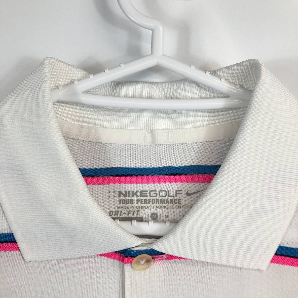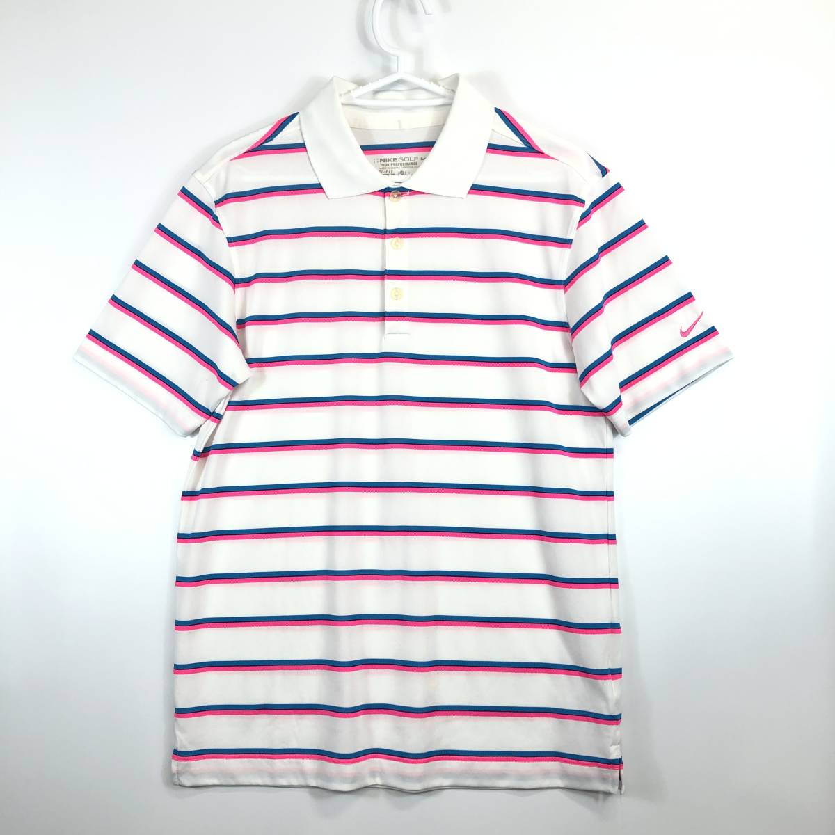 ナイキゴルフ NIKE GOLF 半袖速乾ポロシャツ ボーダー ホワイト ピンク 水色 Mサイズ 456912