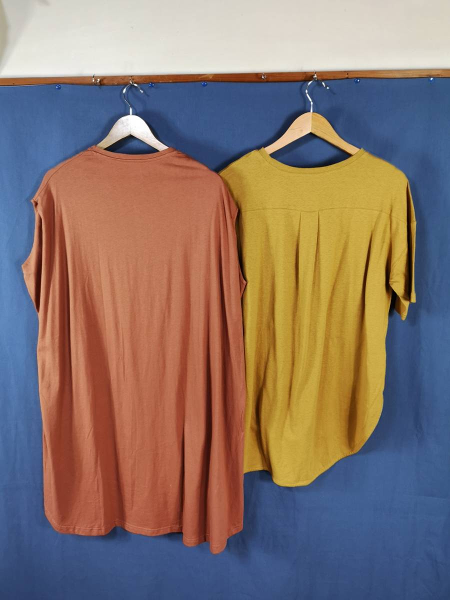 カジュアル着にもちょっとしたお出かけ着にも使えるアイテムですよ!(^^)/ やっぱり夏はTシャツかなぁ~(*^。^*) ☆ Tシャツ【 サイズ 】M~Lサイズ 記載サイズ ≪ ブラウン ≫ 身長 … 154~162cm バスト … 79~94cm 着丈 … 102cm (素人採寸) 身幅 … 73cm (素人採寸) すそ幅 … 80cm (素人採寸) 【 素材 】 Tシャツ素材。 本体 綿 … 100% ※ 抗菌防臭加工 ☆ Tシャツ【 サイズ 】M~Lサイズ 記載サイズ ≪ 黄土色 ≫ 身長 … 154~162cm バスト … 79~94cm 着丈 … 76cm (素人採寸) 身幅 … 57cm (素人採寸) すそ幅 … 64cm (素人採寸) 【 素材 】 Tシャツ素材。 本体 綿 … 85% 麻 … 15% 【 カラー 】 ブラウン … 1枚 (新品) 黄土色 … 1枚 (新品) 希望店頭小売価格 1枚 ¥3190(税込み) 神経質な方は、ご入札をお控えください。 ノークレーム、ノーリターンです。 ※お洗濯の際に色落ち、色移り等の可能性もありますので 他の物と分けてお洗濯されることおすすめします。 ※サンプル品には、品質表示等のタグは付いておりません。 商品のお取り扱いとうにはご注意ください。 ※送料込みの金額設定で出品している商品に関しましては、 同梱、送料の割引は致しません。 個別発送とさせていただきます。 (おまとめ取引はできません。) ※お手数をお掛けしますが、商品のサイズに関しましてご自身の服のサイズと照らし合わせてご確認ください! ※商品のプリントや刺繍位置が商品の写真の位置と異なる場合がありますのでご了承ください。 ※当方の出品しています商品に関しまして、微妙な色合いのものが多数ありますが…アバウトな表現で表記しておりますのでお了承ください。 尚、添付しております写真は照明を使っている場合使っていない場合で色合いも変化します。 屋内、屋外での商品の見え方が違いますのでその部分を私なりに表現させていただいております。 ※商品の色の表現に関しまして、文字でお伝えすることが難しい色がございます。できる限りわかりやすく表現させていただきますがご想像の色と違う場合もございます。 ※撮影状況・PC環境により実際の商品と色合いが異なってみえる場合がありますので、ご了承の上ご入札お願いします。 ※セット内容の変更はできません。 |