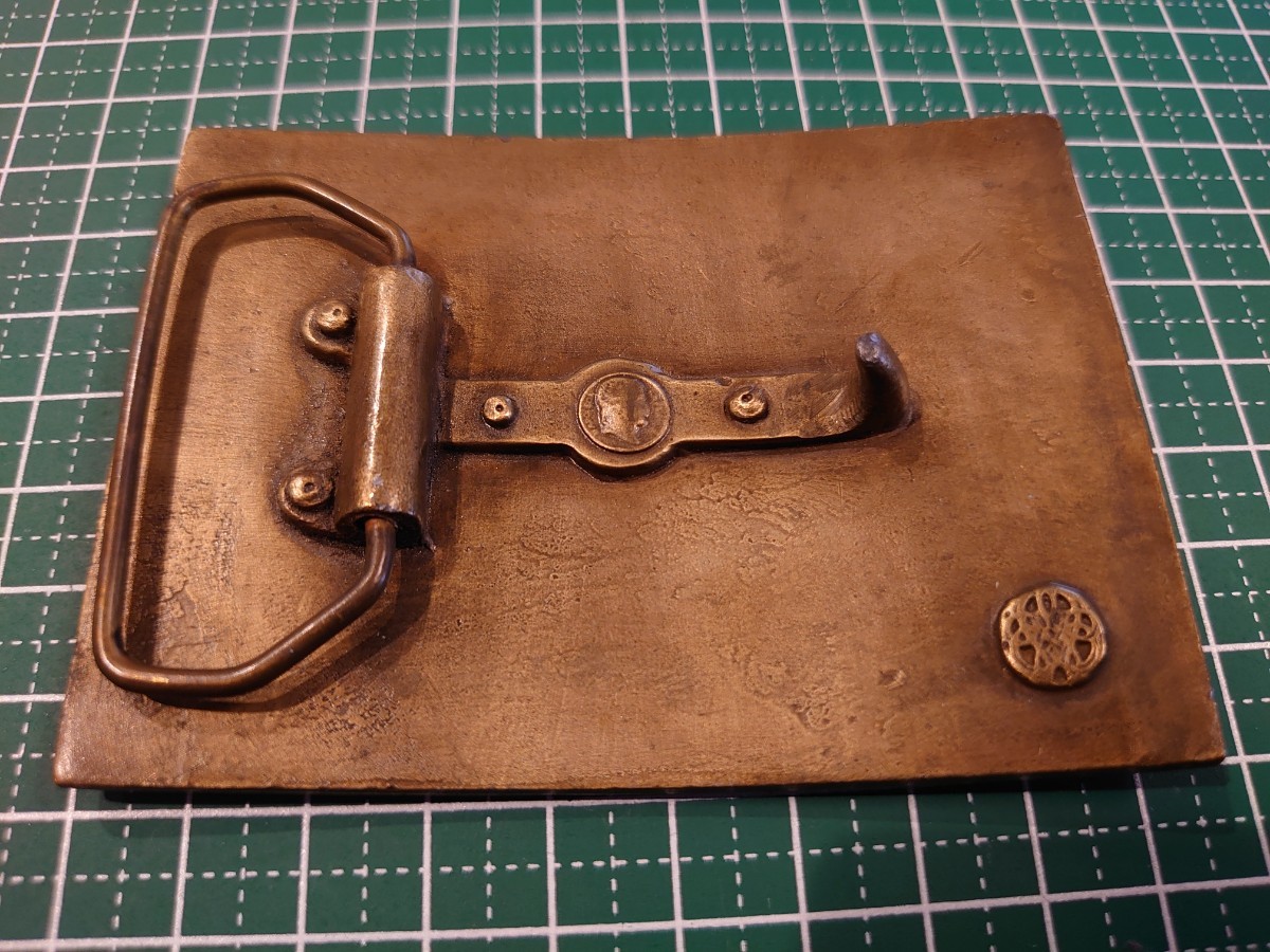 かなり古いものですがたいへんきれいだと思います。素晴らしい金属加工技術の本場米国製ベルトバックルです。製品には製造流通過程で付く程度の小傷や変色がある場合もございます。苦情返品なしでお願いいたします。サイズは1センチの方眼を参考にして下さい。ベルト幅45ミリくらいまでです。182g。