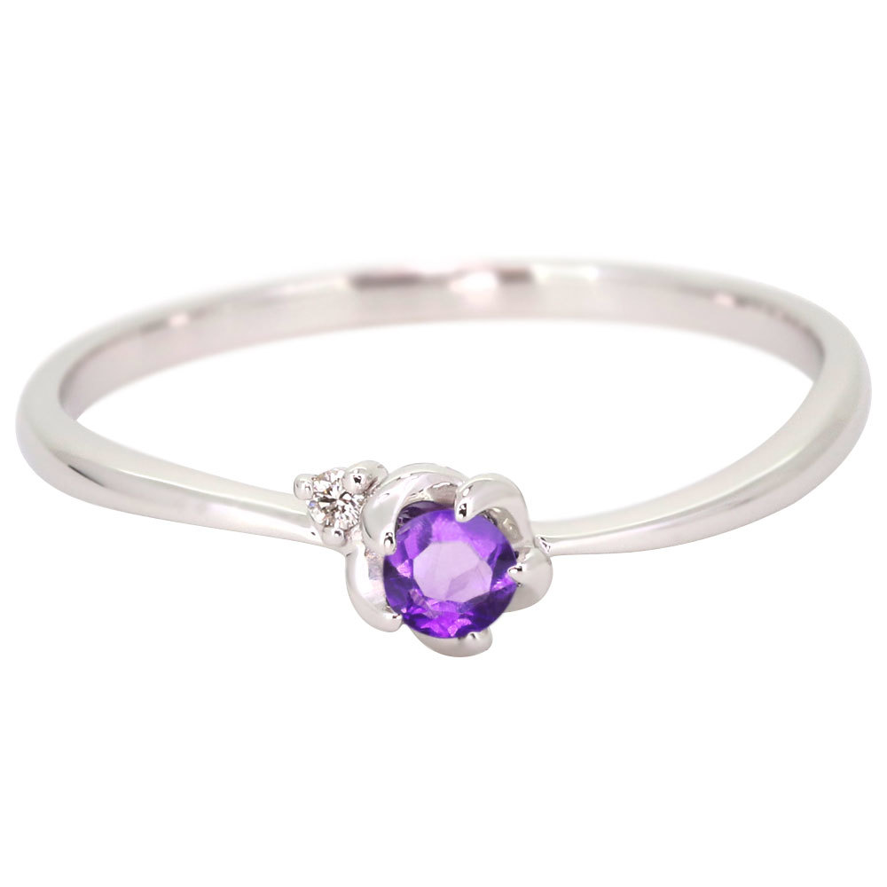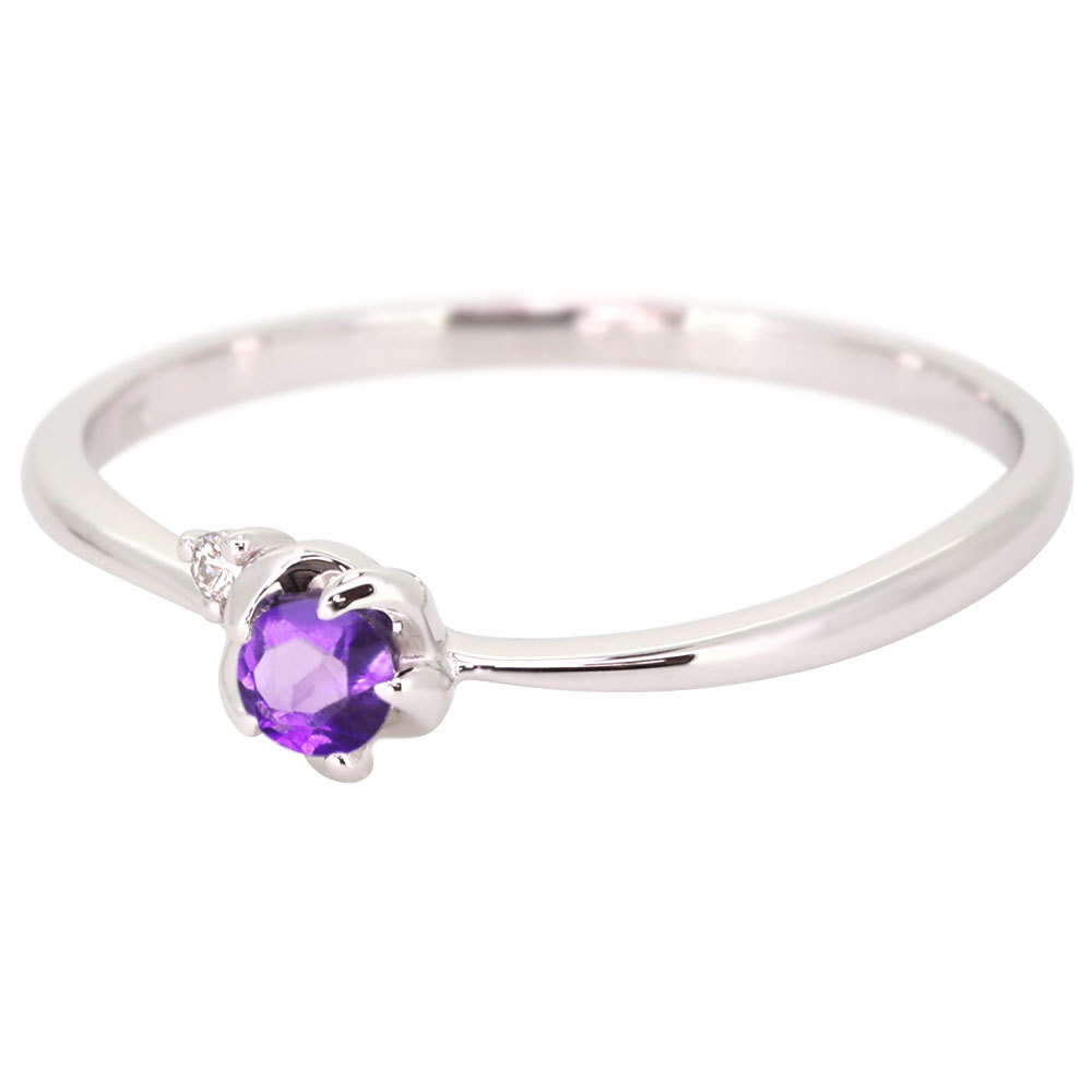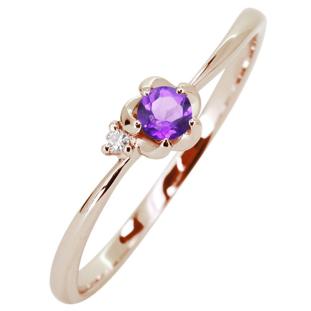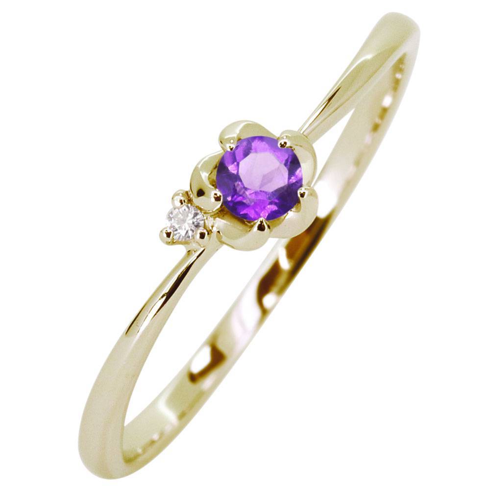 2月誕生石アメジストを使用した10金製の、フラワー(花)モチーフリング(指輪)です。