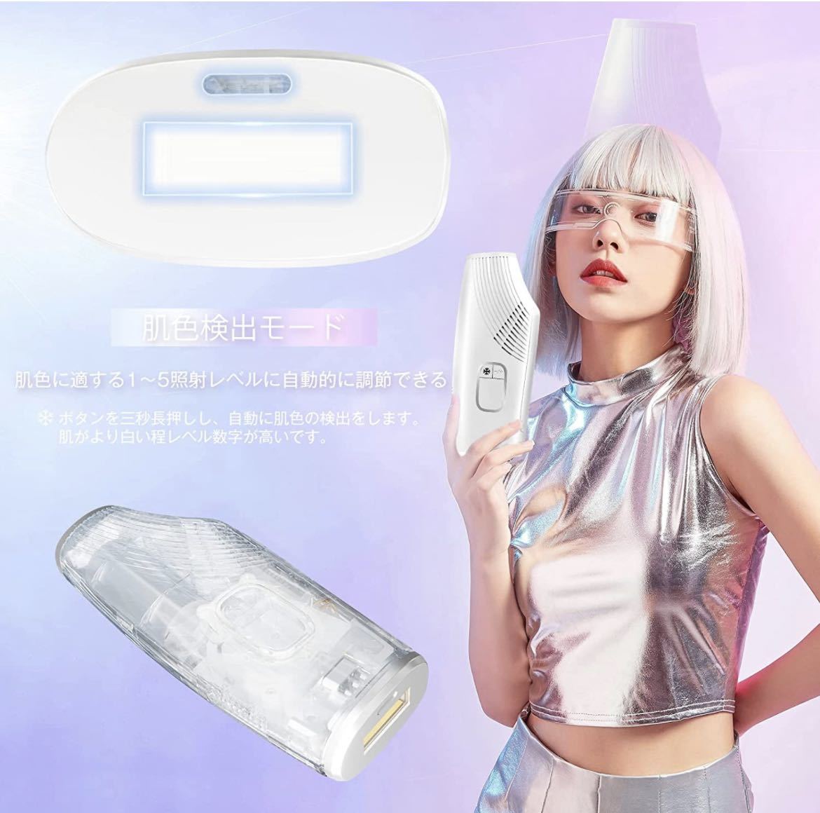 【肌色検知センサー&LEDディスプレイ】自動的に肌の色を検知し、誤照射を防ぐことができる。脱毛器の照射レベルは5段階調節することができます。カラーチャートを参照に、ご自分の肌色に合う照射レベルで使うのはより快適な脱毛体験を楽しめます。大型液晶画面で残りのフラッシュ回数が一目でわかります。非常に便利です。
