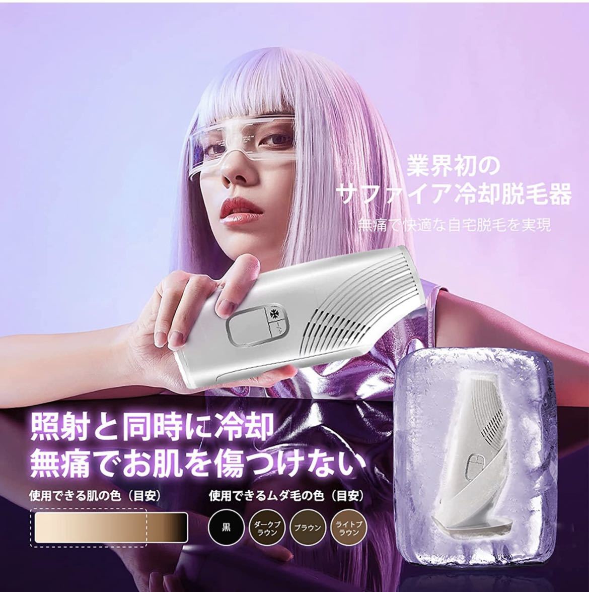 サファイア冷感脱毛器【業界新登場 UVベース付き】 全身脱毛 IPL光脱毛器 vio対応 家庭用 99万回照射 自動照射 連続照射 光脱毛器 男女兼用 フラッシュ式脱毛器 光美容器 (White)