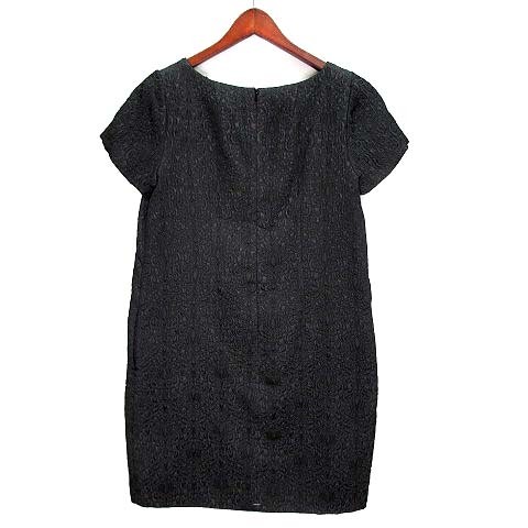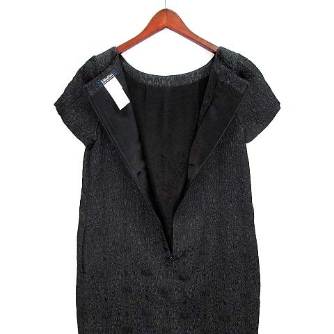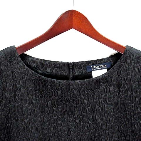 Sマックスマーラ 'S Max Mara エンボス ダマスク 総柄 ドレス ワンピース 膝丈 半袖 ブラック 黒 42 美品 レディース