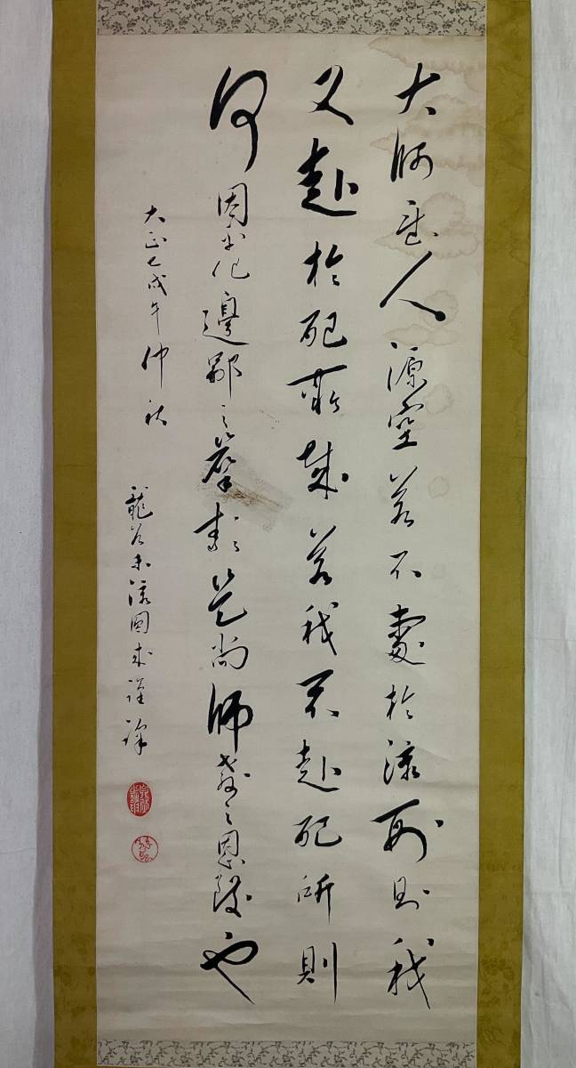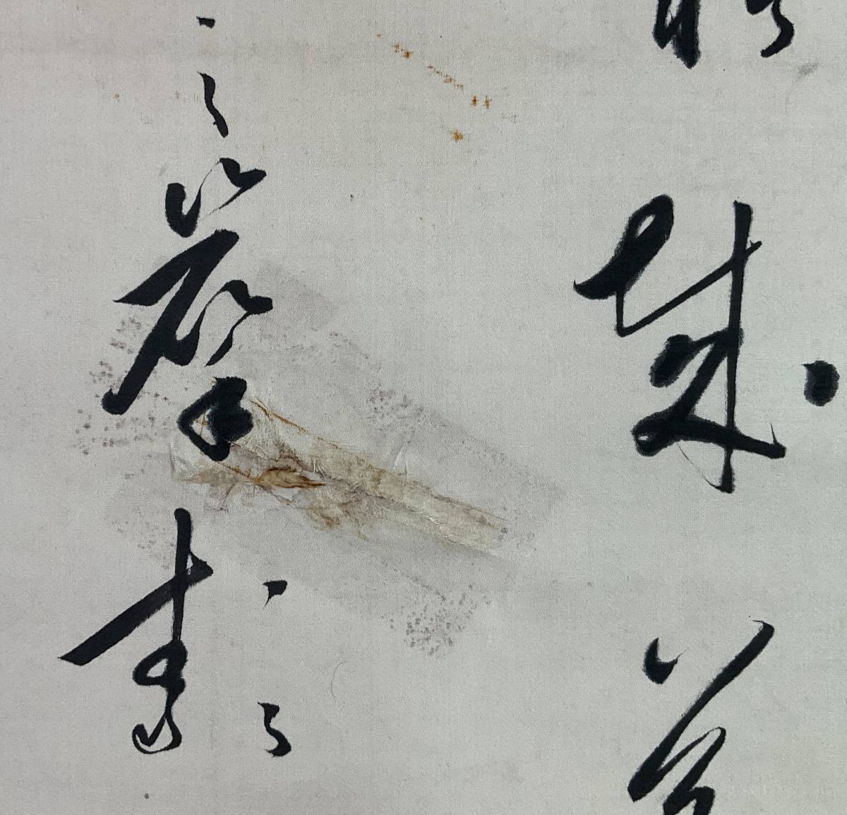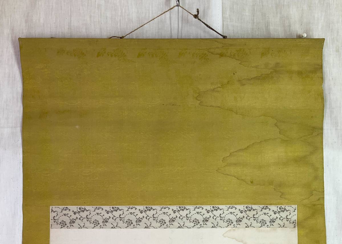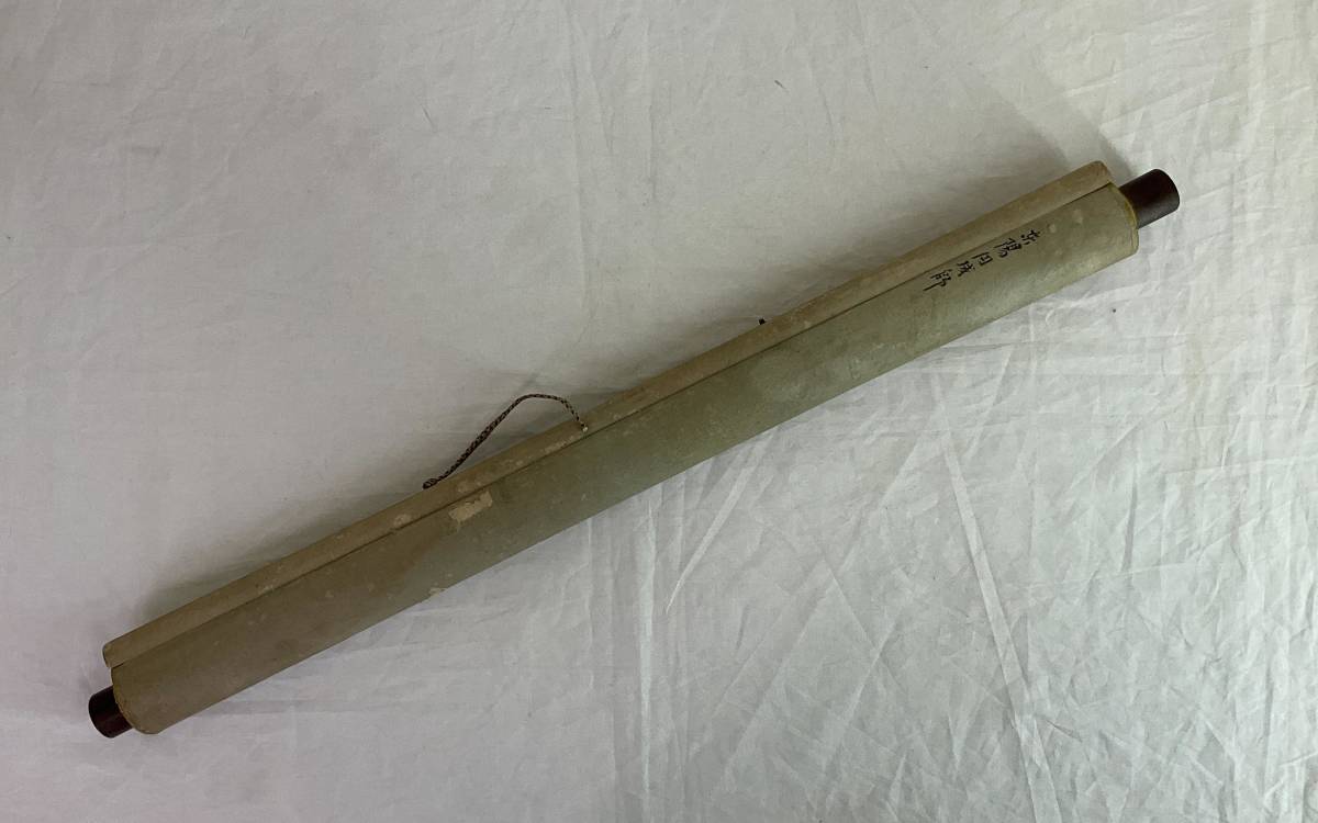 古い掛け軸は軸先を固定している接着剤が弱り、輸送途中の衝撃で軸先が外れてしまう場合がございます。