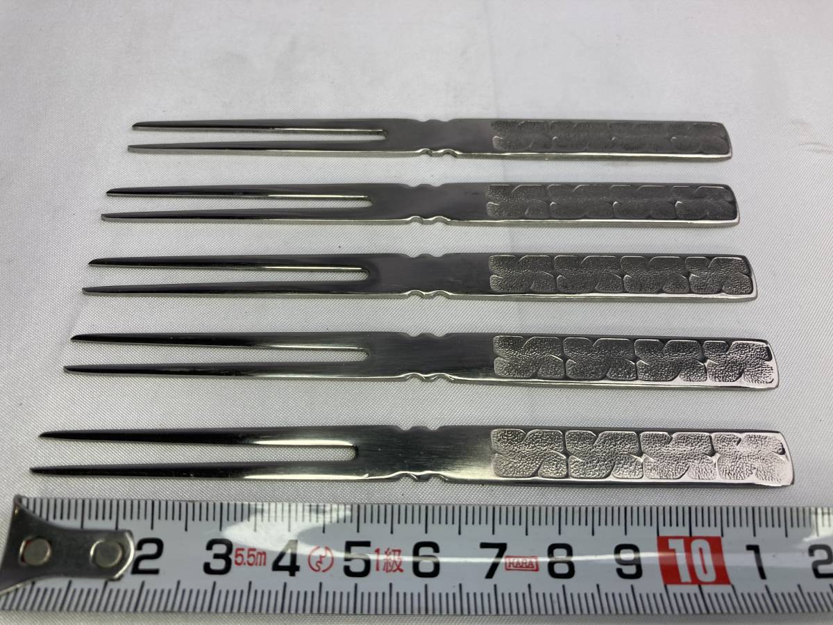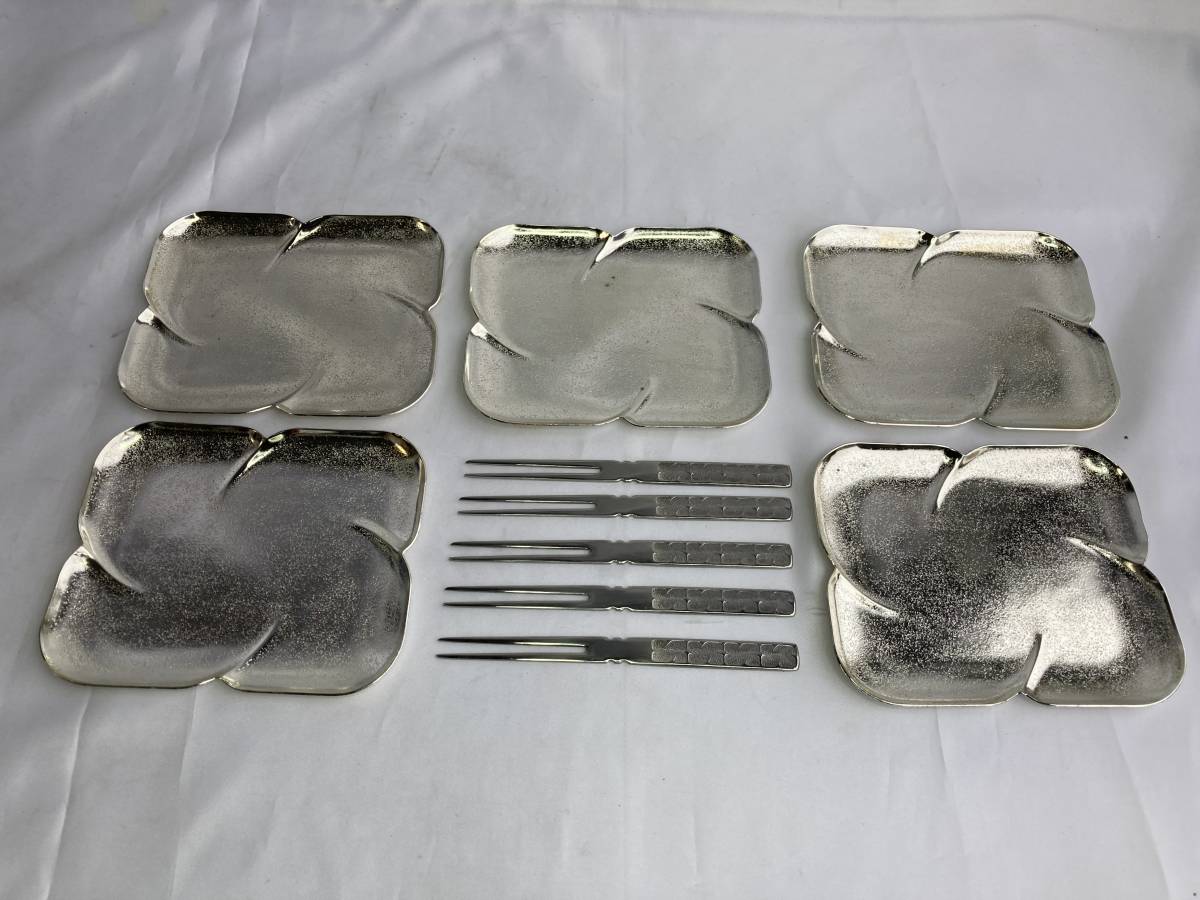 【未使用品】 Martian stainless steel マーシャンステンレス 菓子皿 & フォーク(シルバー)5客セット
