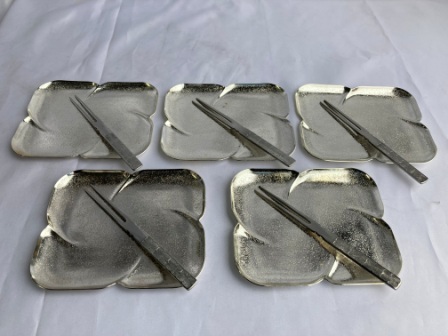 ※ 菓子皿の1,2枚には9,10枚目の画像にあるように細かな黒い汚れがあります。