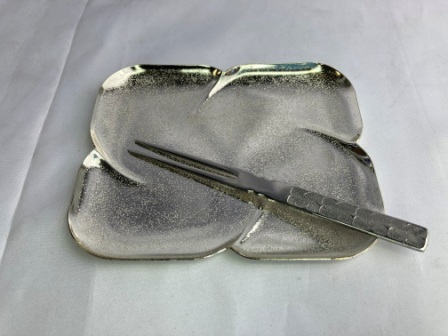 ★ステンレス カトラリー★【未使用品】Martian stainless steel マーシャンステンレス 菓子皿 & フォーク(シルバー)5客セット Bz1_YP