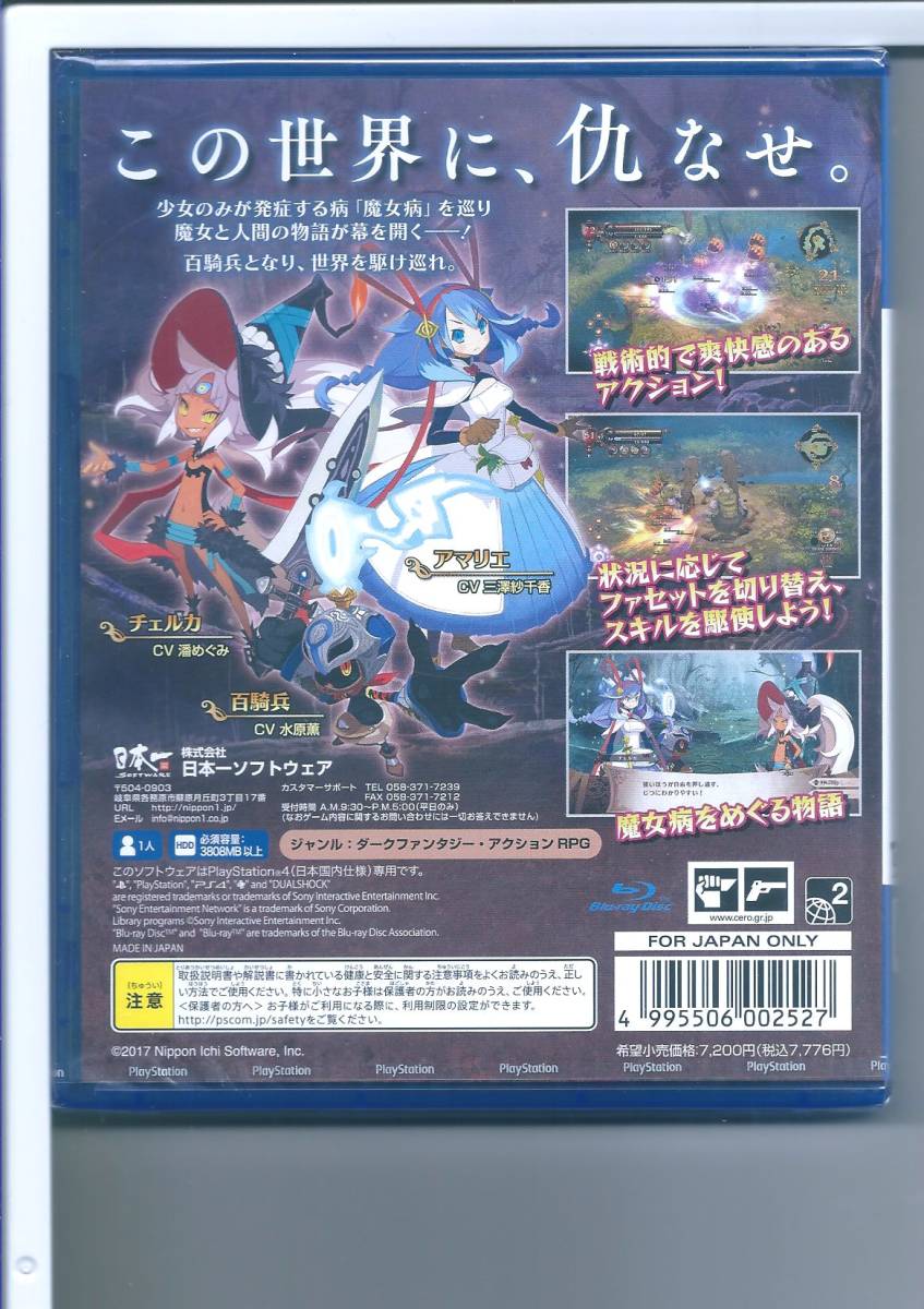 ●JANコード4995506002527 n2 ☆PS4 魔女と百騎兵2 ●商品の状態 新品未開封、包装されたままの状態ですが、包装にスレ・イタミがあります。ケースにもスレなどがあるかもしれません。 |