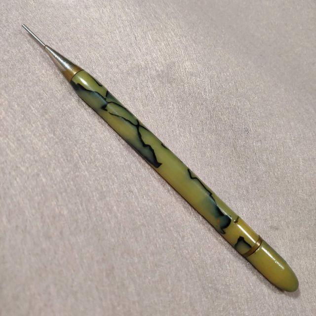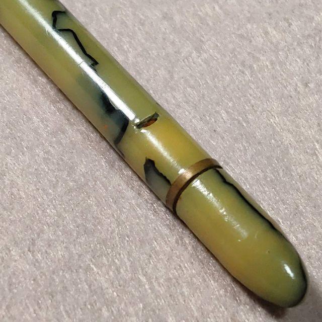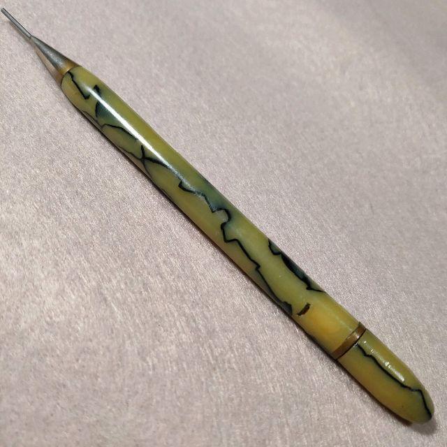 口金を回しての繰り出し式で、芯は先入れ式で可動しましたが、古いもので鑑賞用といたします。