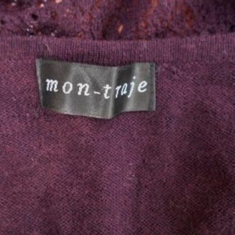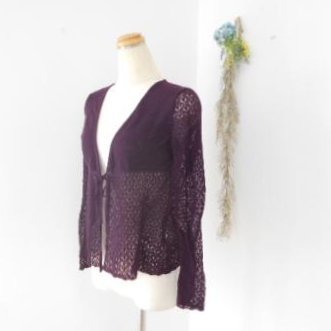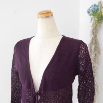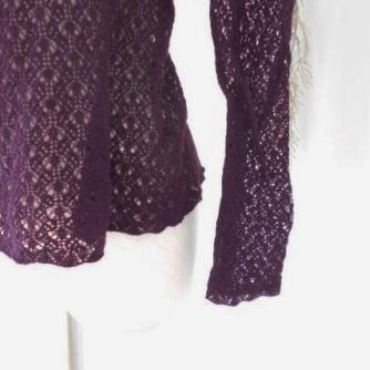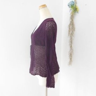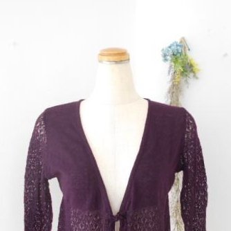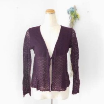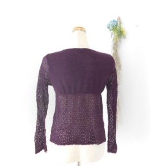 mon-traje レディース 薄地でウール混の長袖ニットカーディガンです。お色はパープル・ワインカラーです。編み柄も綺麗なデザインで素敵な一品です。薄着で少し寒い時に重宝しそうな一品です。