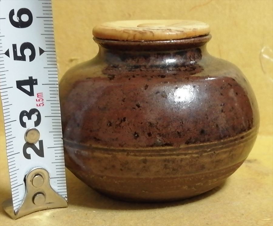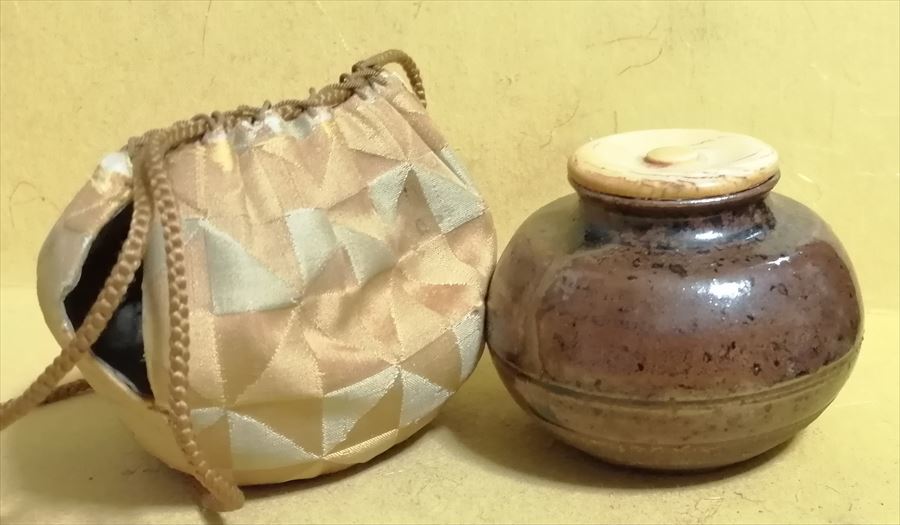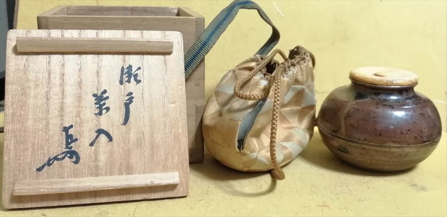 桃山時代 瀬戸 古瀬戸 茶入 即中斎書付 鑑定箱 仕覆 茶道具 保証品 共袋 古裂