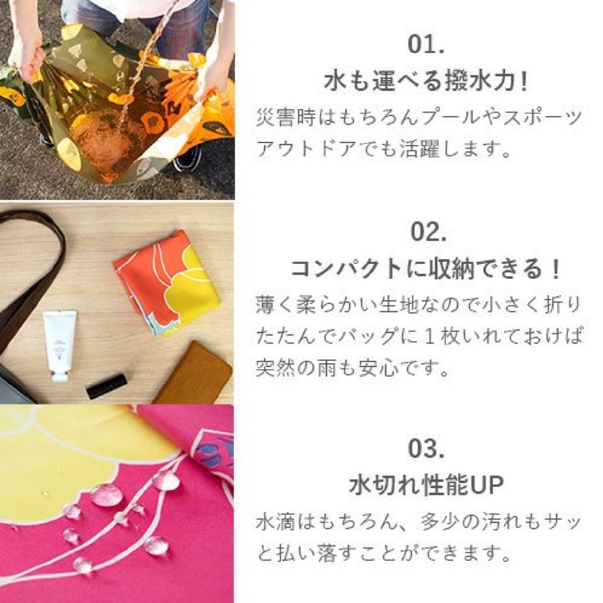 特色  アクアドロップは生地に水を汲めるほどの強力な撥水加工を施しています。汚れも付きにくく、速乾性にも優れています。鞄に1枚入れておくと、日常のエコバッグから雨カバー、災害時の吸水バッグ、おむつ替えシートにもなり大変便利です。