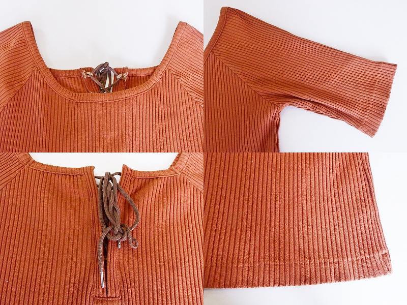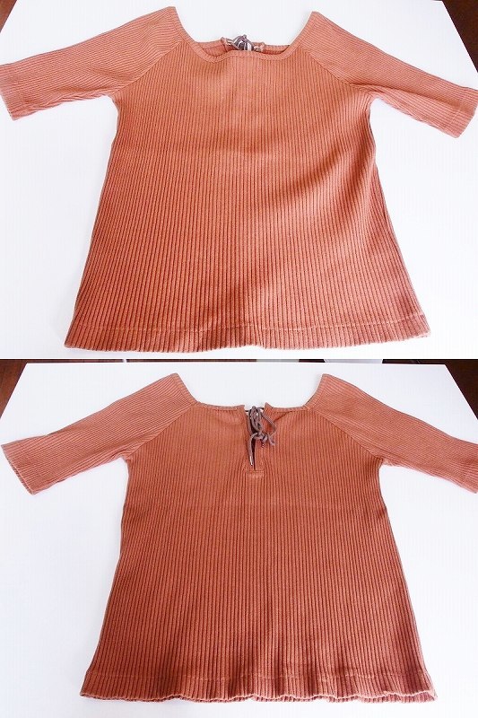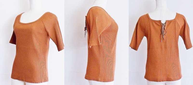 商品名 | リブカットソー スクエアカラー 五分袖 バックリボン |