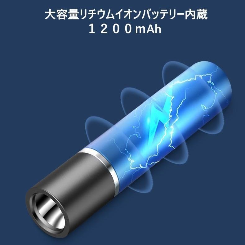 懐中電灯の内部に18650充電式バッテリーが内蔵され、バッテリーを取り外さずにUSBケーブル(付属)で直接に充電できます。