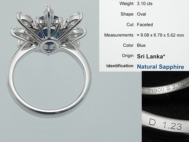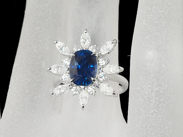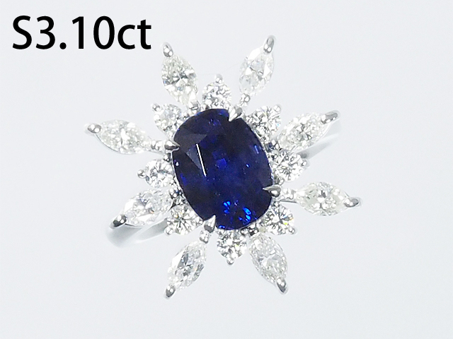 詳細:ノーブランド ロイヤルブルー サファイア/3.10ct ダイヤ/1.23ct Pt900 リング 12号 鑑別書付き 仕上済