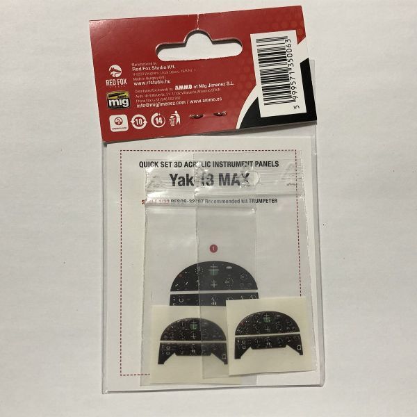 レッドフォックススタジオ 1/32 Yak-18 マックス用3Dアクリルインパネ 計器盤 トランペッター用 RFSQS-32007 PM04