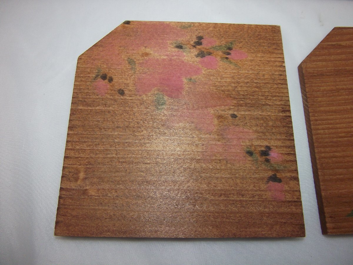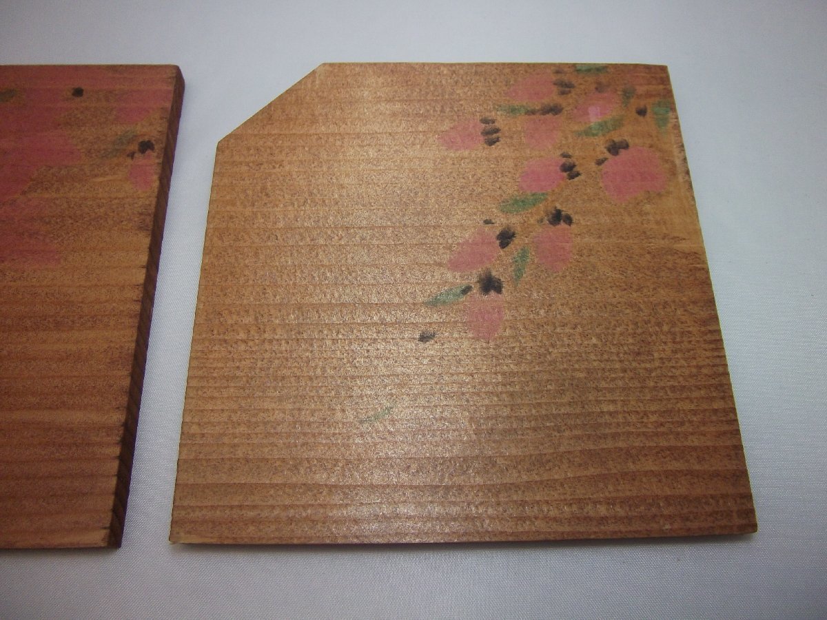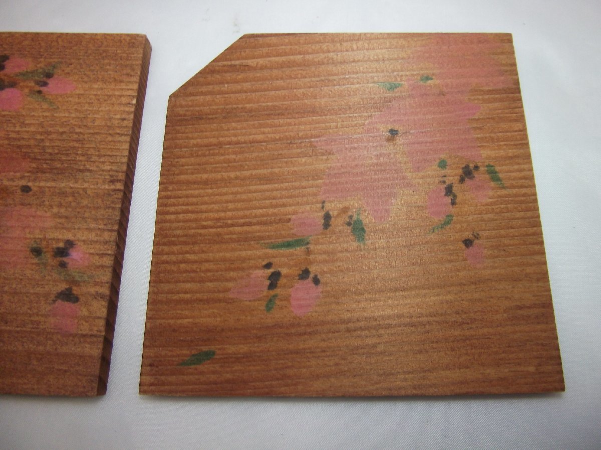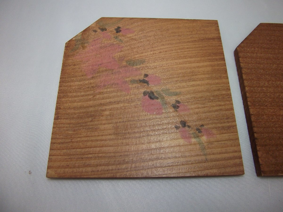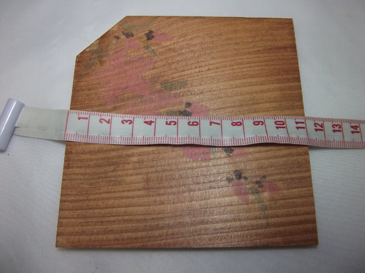 の出品となります。 昭和時代に購入した物です。 (詳細不明) 全体的に使用感はありますが、木製の為それが味や趣きのある一品へと変化している印象です。 断定は出来ませんが天然杉に水性で花の柄を描いた物と思われます。 経年による飴色への変色はございますが、大きな痛み等もなく個人的には綺麗な状態だと思われます。 とは言え、鑑定の専門では無い為、写真にてご判断をお願い致します。 和菓子などを置いてお出しするお皿としても良さそうです。 コレクションやインテリア・店舗什器としてお使いいただいても楽しいと思います。 年数の割に美品の部類だとは思いますが、当方の主観の為、写真にてご判断をお願い致します。 アンティークや骨董にご理解頂ける方の入札をお願いします。 150g程度(5枚) |