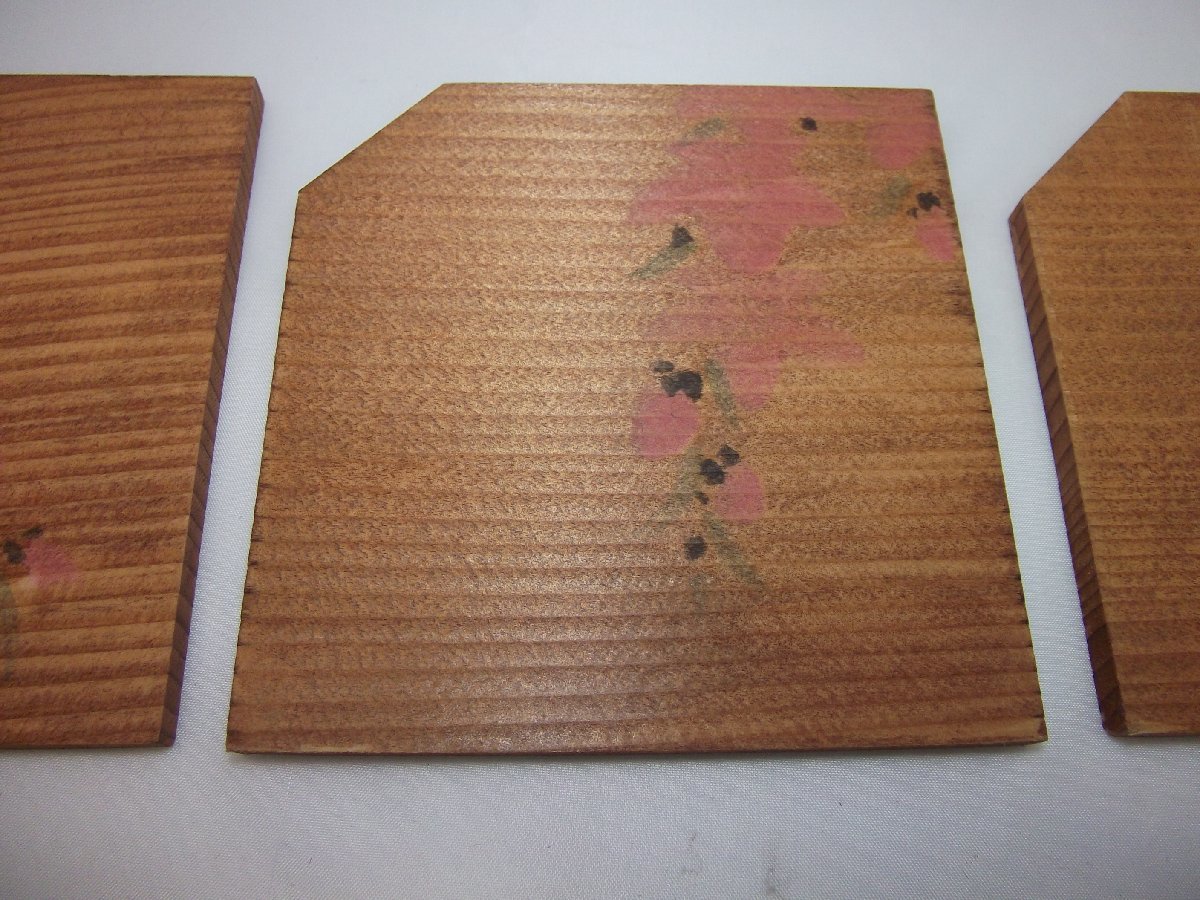 | ■USED品 木製 茶托 小皿 茶器 食器 4角形角欠き 和菓子などにも 木目 ナチュラル 5枚組 箱無し ■ |