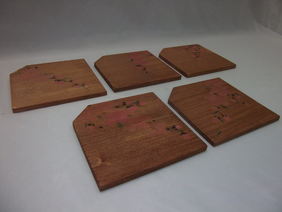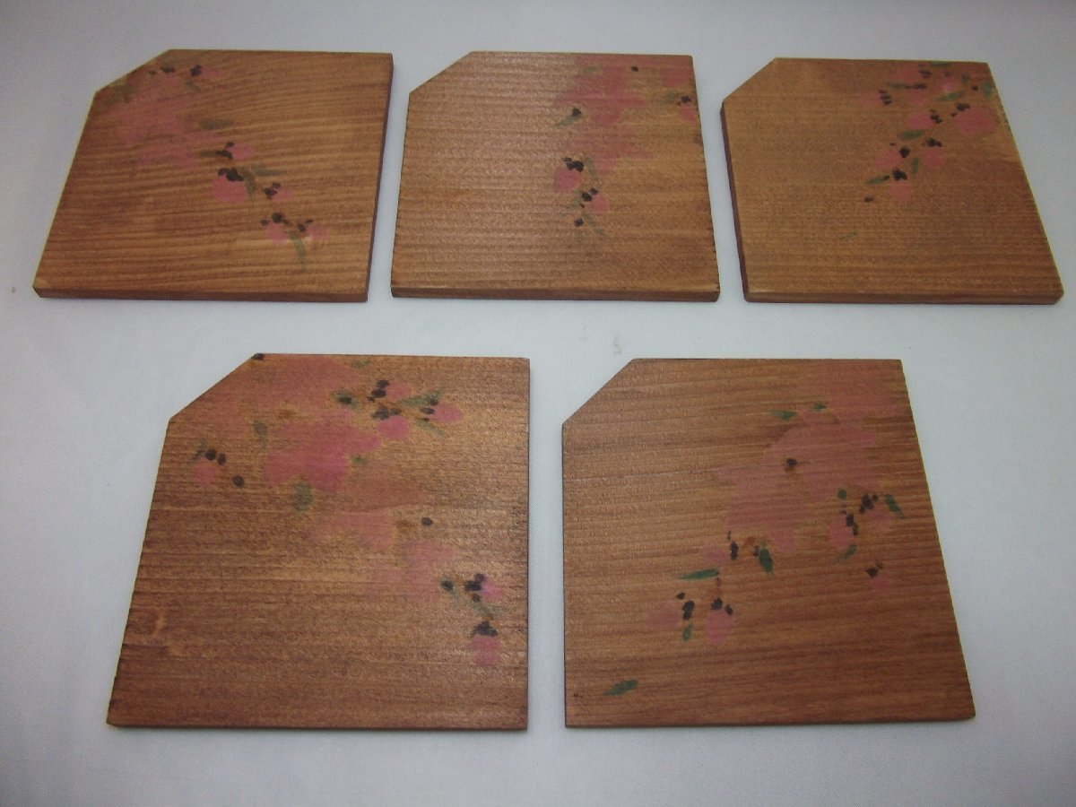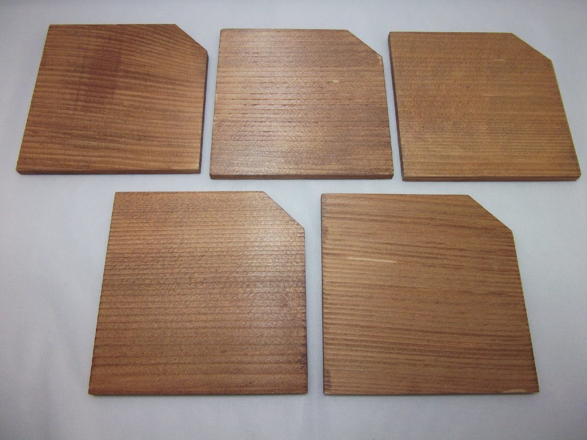 | 【商品説明】 USED品 木製 茶托 小皿 茶器 食器 4角形角欠き 和菓子などにも 木目 ナチュラル 5枚組 箱無し