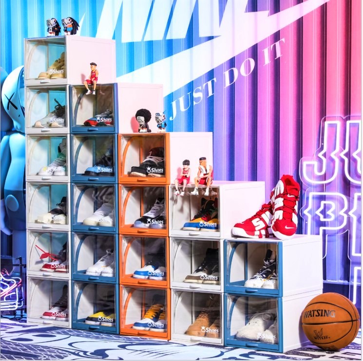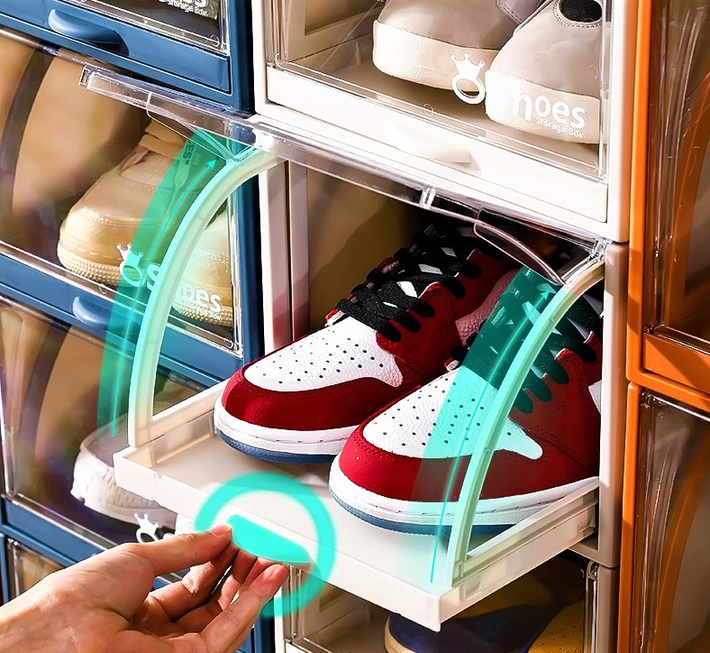 シューズボックス クリア シューズラック 靴収納 シューズケース 玄関収納 靴入れ 3個組 M オレンジ