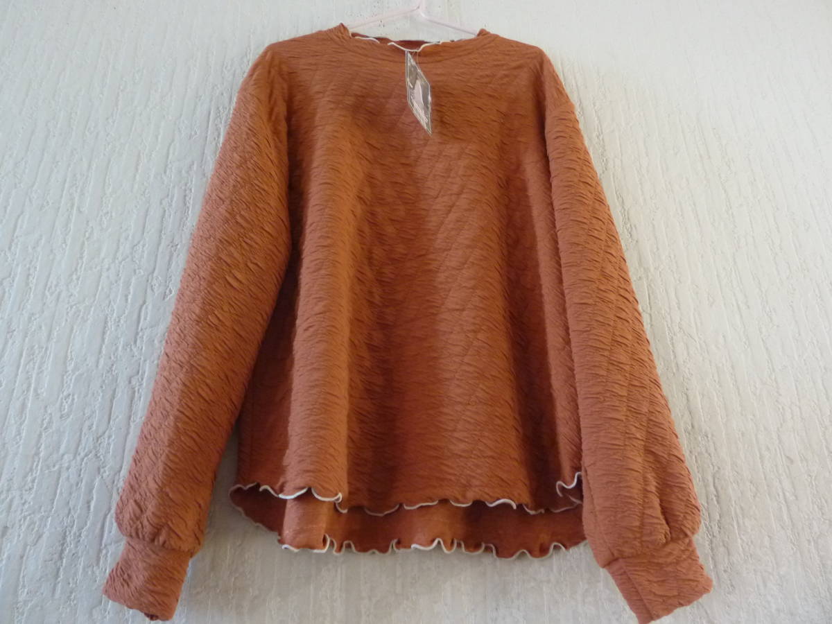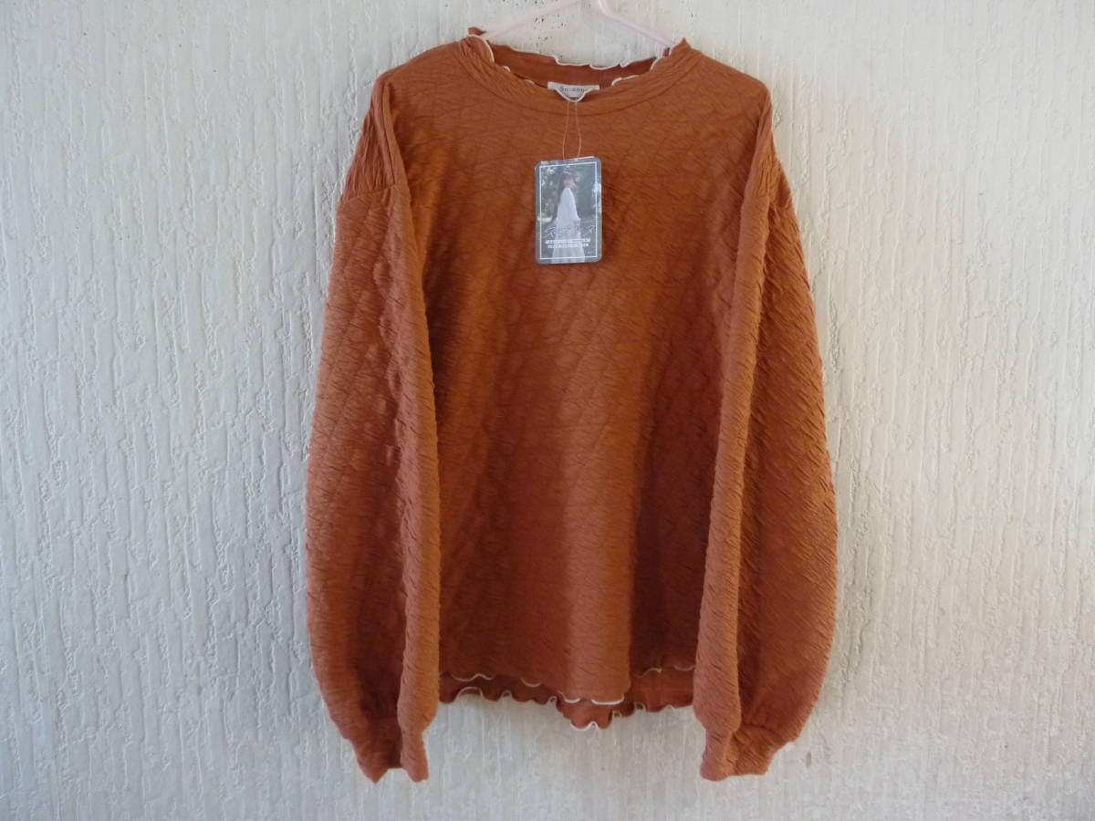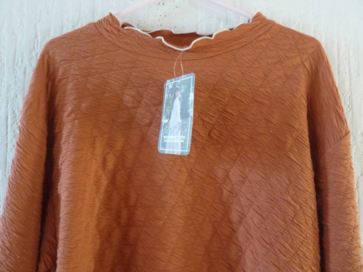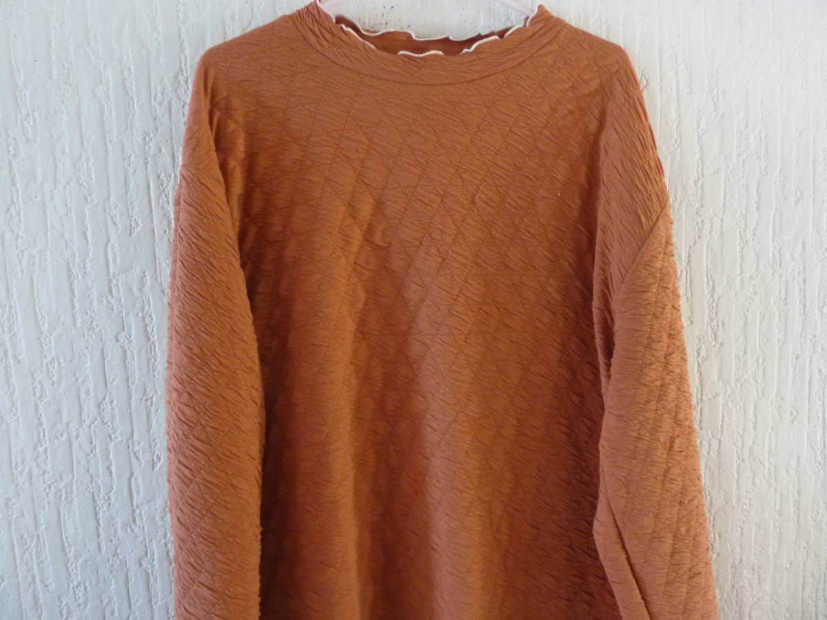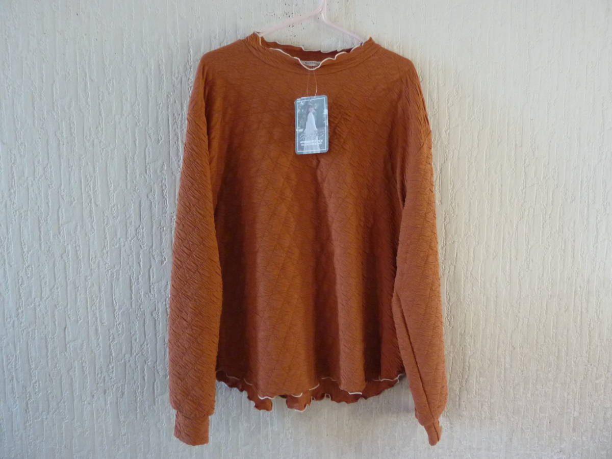 ★スザンヌ プロデュース☆キルトプルオーバー★橙色&お洒落オフホワイトステッチ風★レディースサイズL★肌触り抜群★新品未使用タグ付★