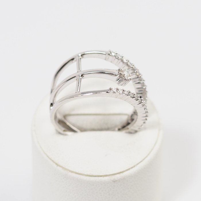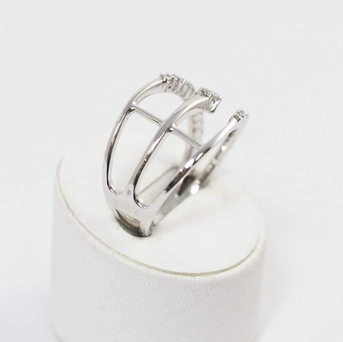 KARATE カラッチ K18ホワイトゴールド ダイヤ0.10ct/0.45ct リング 約15.5号 です。 「どこにもないアート性の高いデザイン」と「人間工学的で身体に沿った構造」による芸術美と機能美の融合したカラッチのリングです。その独創的で洗練されたそのデザインにダイヤを贅沢にあしらいお手元をエレガントに演出してくれます。 若干の小キズが見受けられますがダイヤは綺麗な商品です。 皆様のご入札お待ちしております。 |
