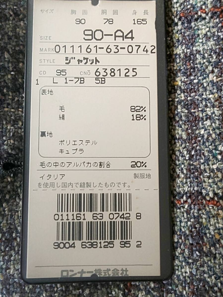 最終処分 LONNER ロンナー 新品 SALE 80%OFF 送料無料 二ッ釦ジャケット A4 S ウール82%シルク18% ゆったり イタリア製生地 日本製 638125