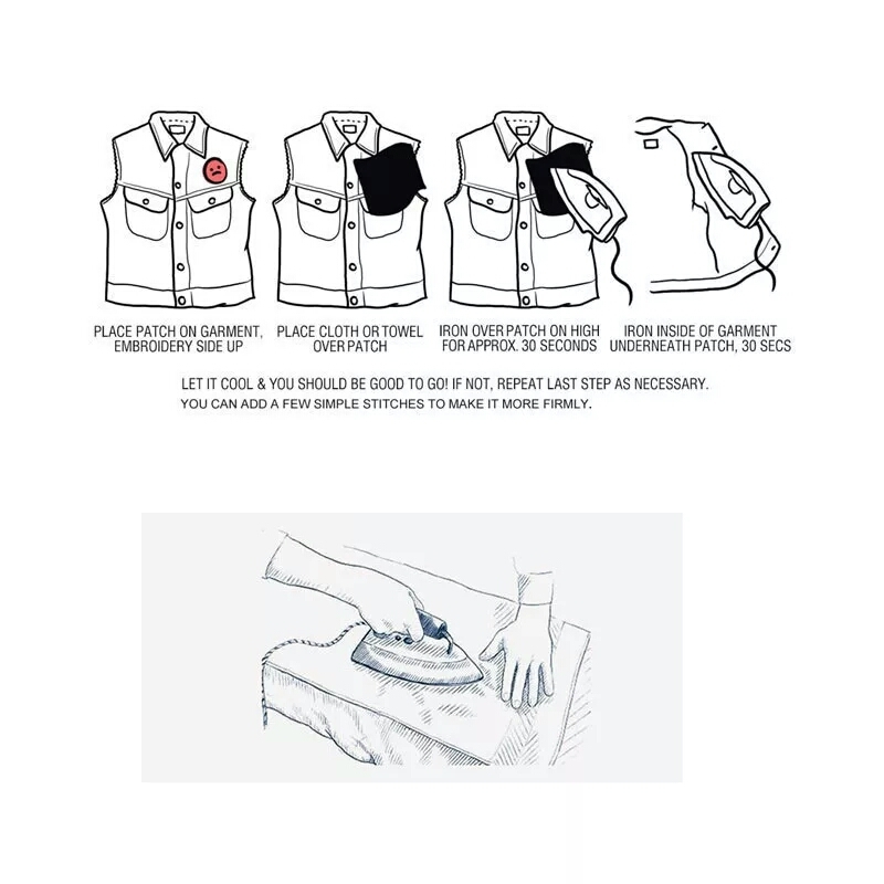 糊が付いていてアイロンで接着できますが、接着後、周囲を縫う事をおすすめします。