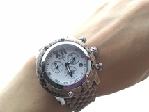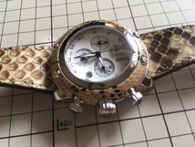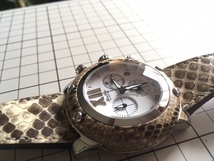ホワイト文字盤にパイソンレザー、クロノグラフの雰囲気良いモデル。