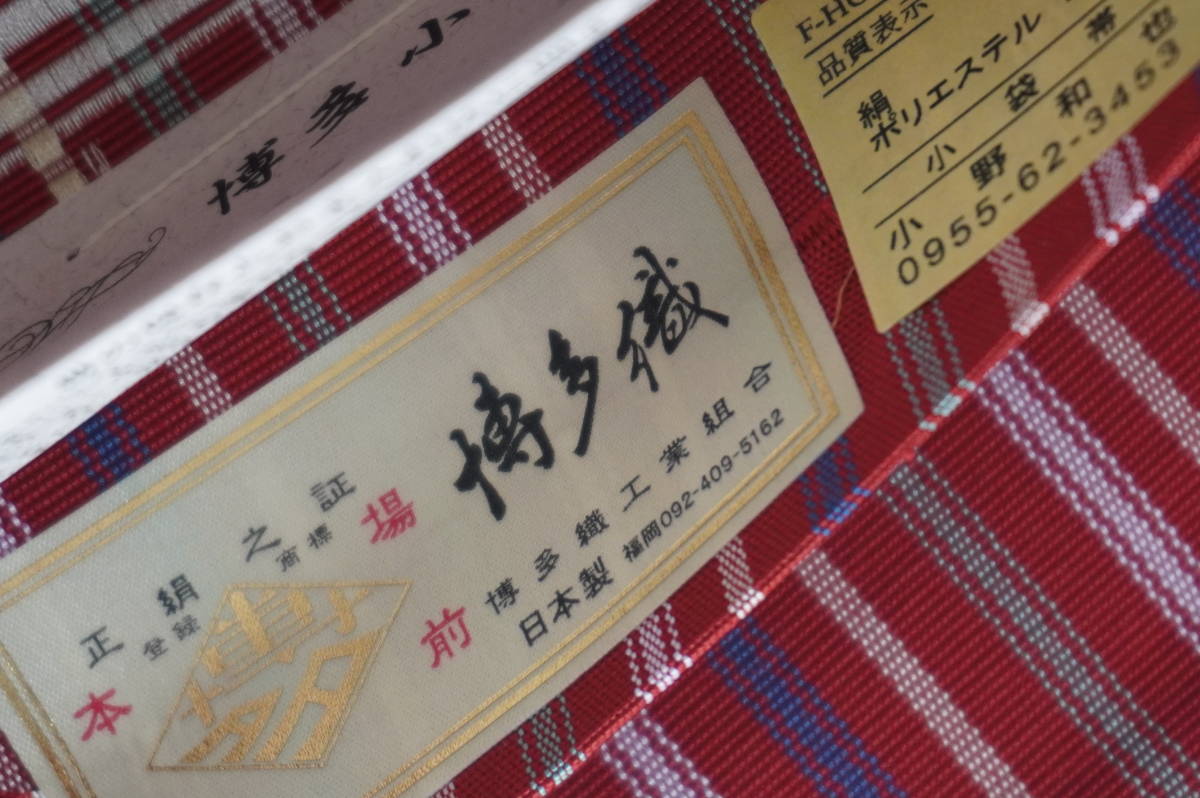 ゆかたに締めるなら小袋帯でも、ということで、本場筑前博多織りの小袋帯の出品です。新品。巾は4寸、長さは標準。絹75%ポリエステル25%  織物ですので多少のことはあるかもしれません、織味としてご理解くださいませ。博多証紙(金色)のついた正規品です。
