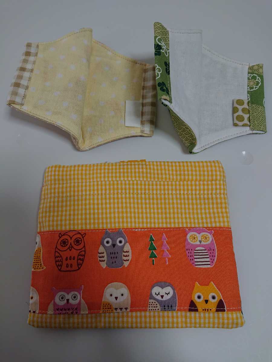 予備マスク入れ...布製です。約11×14センチ。 マジックテープで開閉します。かわいいひよこ柄です。