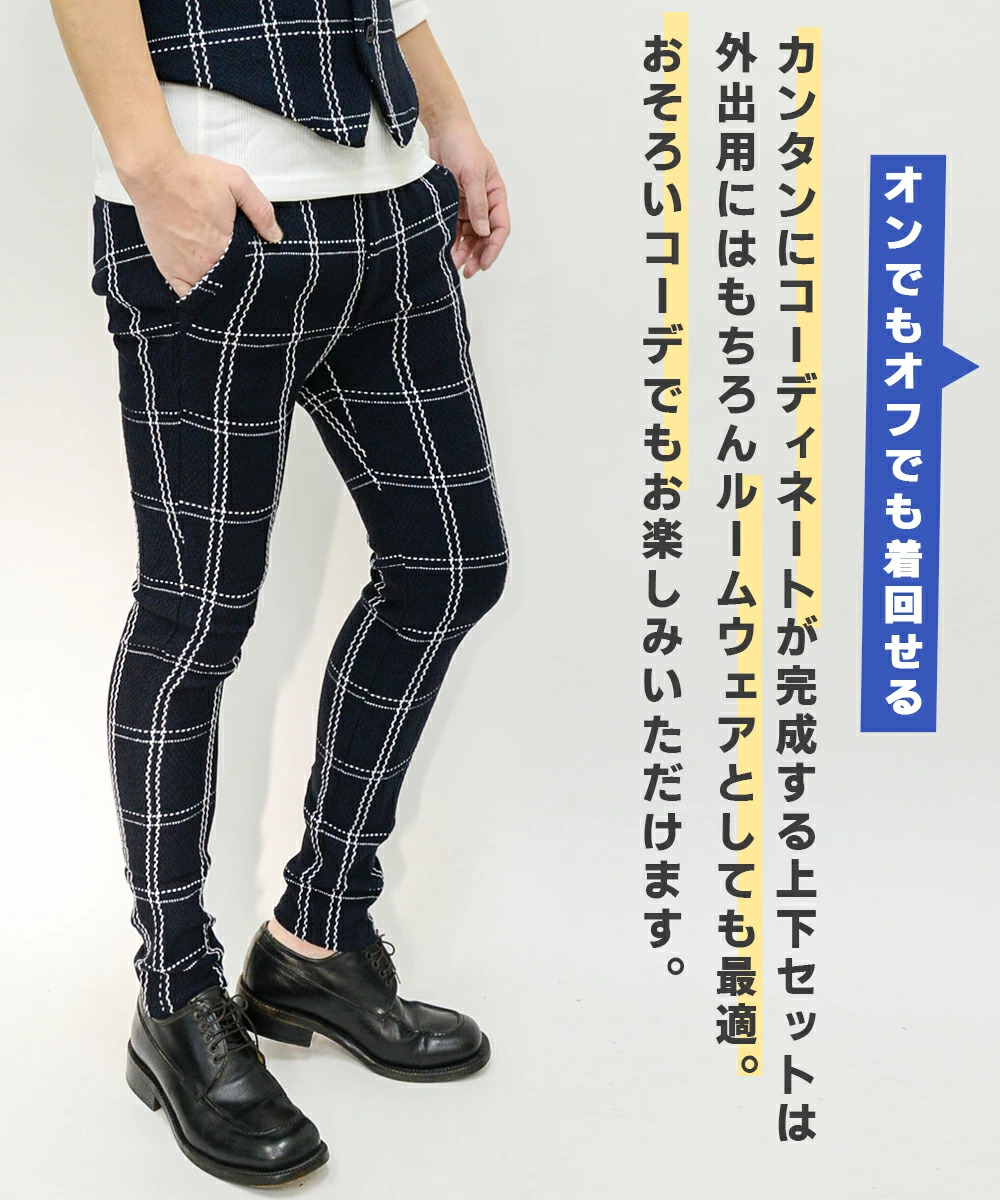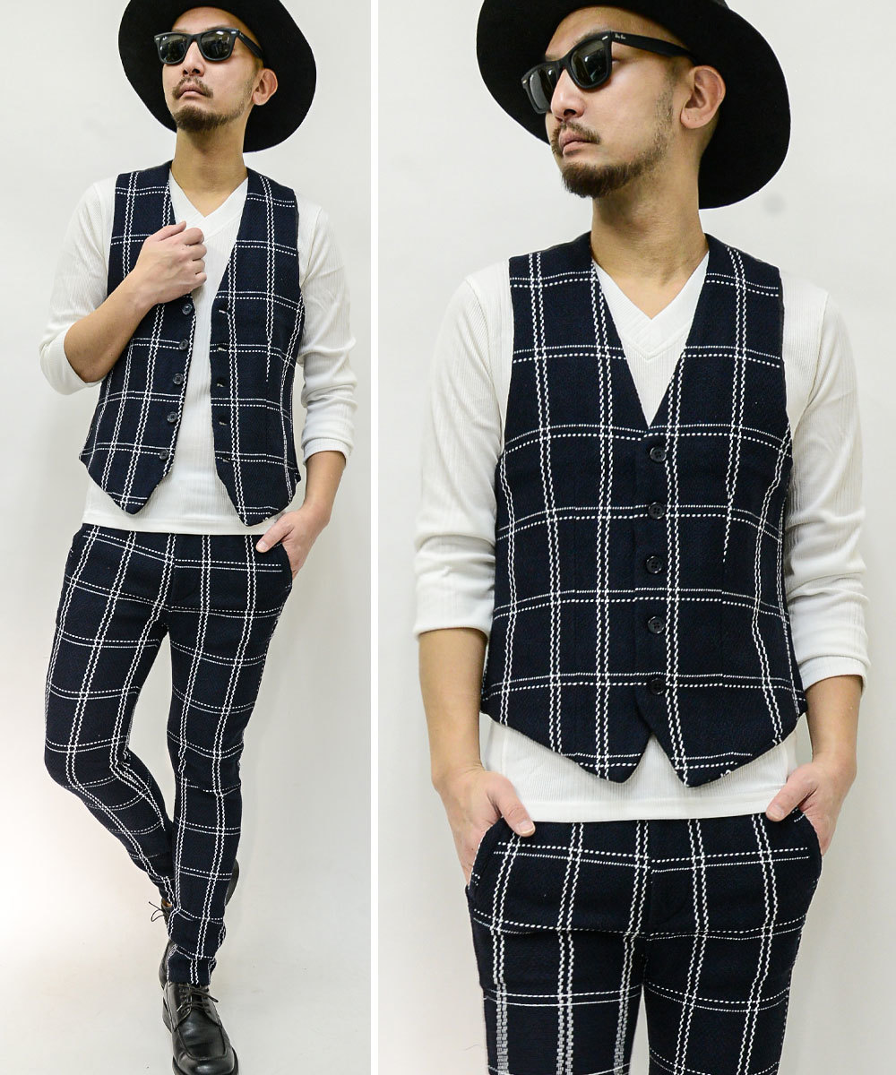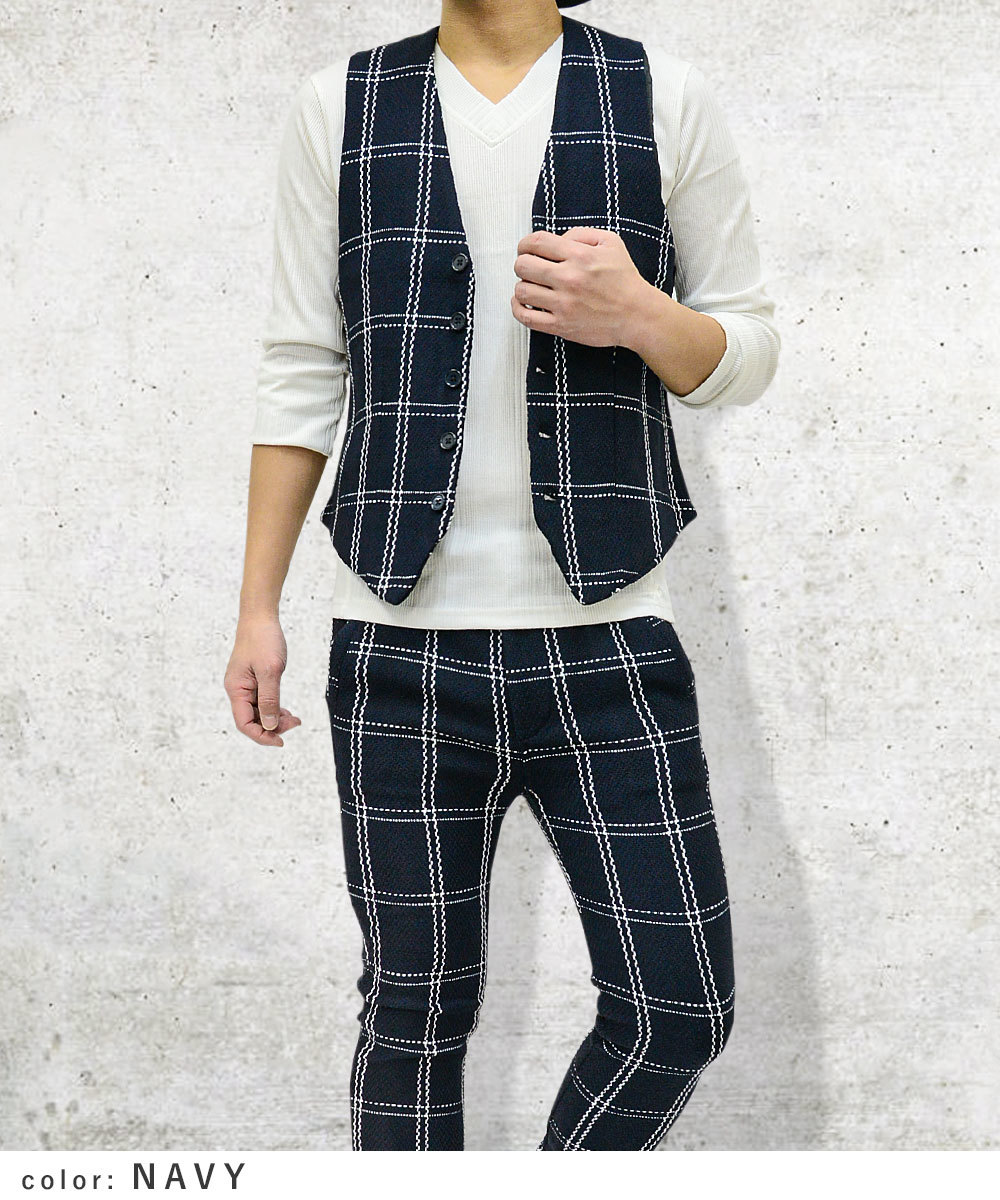 【閉店セール】(送料無料)ジャガード織りベスト&スキニーパンツセットアップスーツ20463-01461新品 ネイビーM
