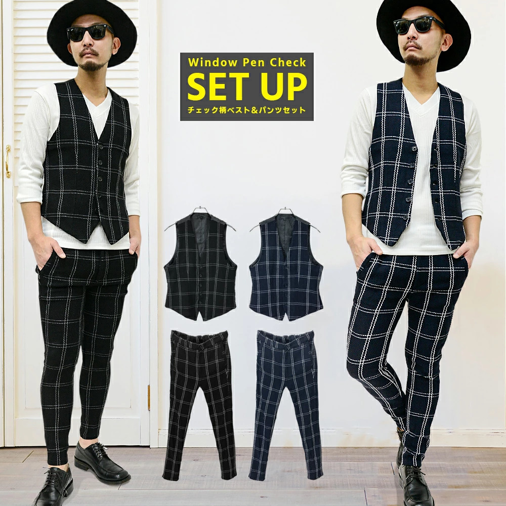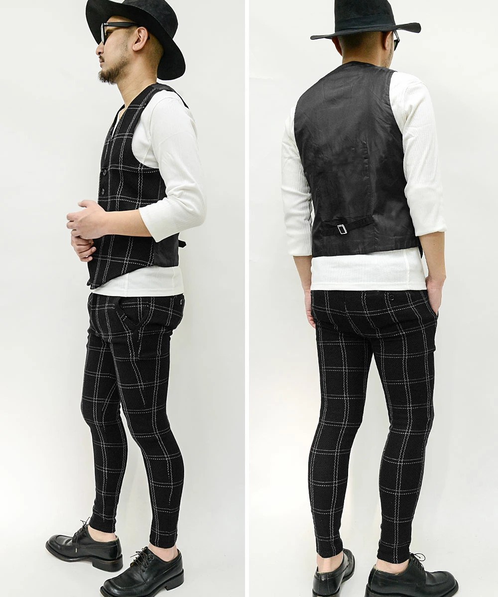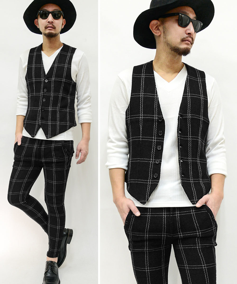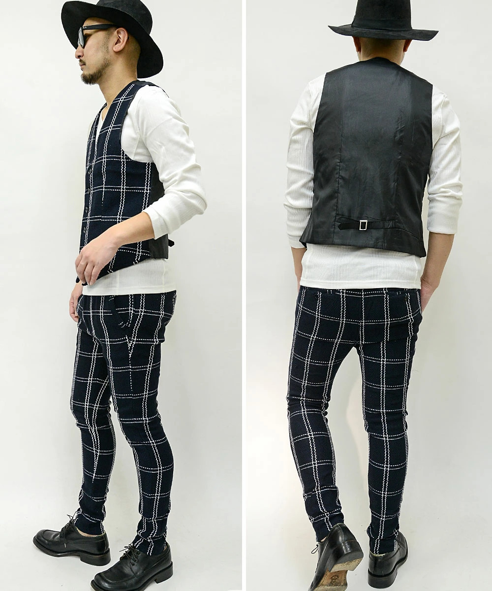 【閉店セール】(送料無料)ジャガード織りベスト&スキニーパンツセットアップスーツ20463-01461新品 ネイビーM