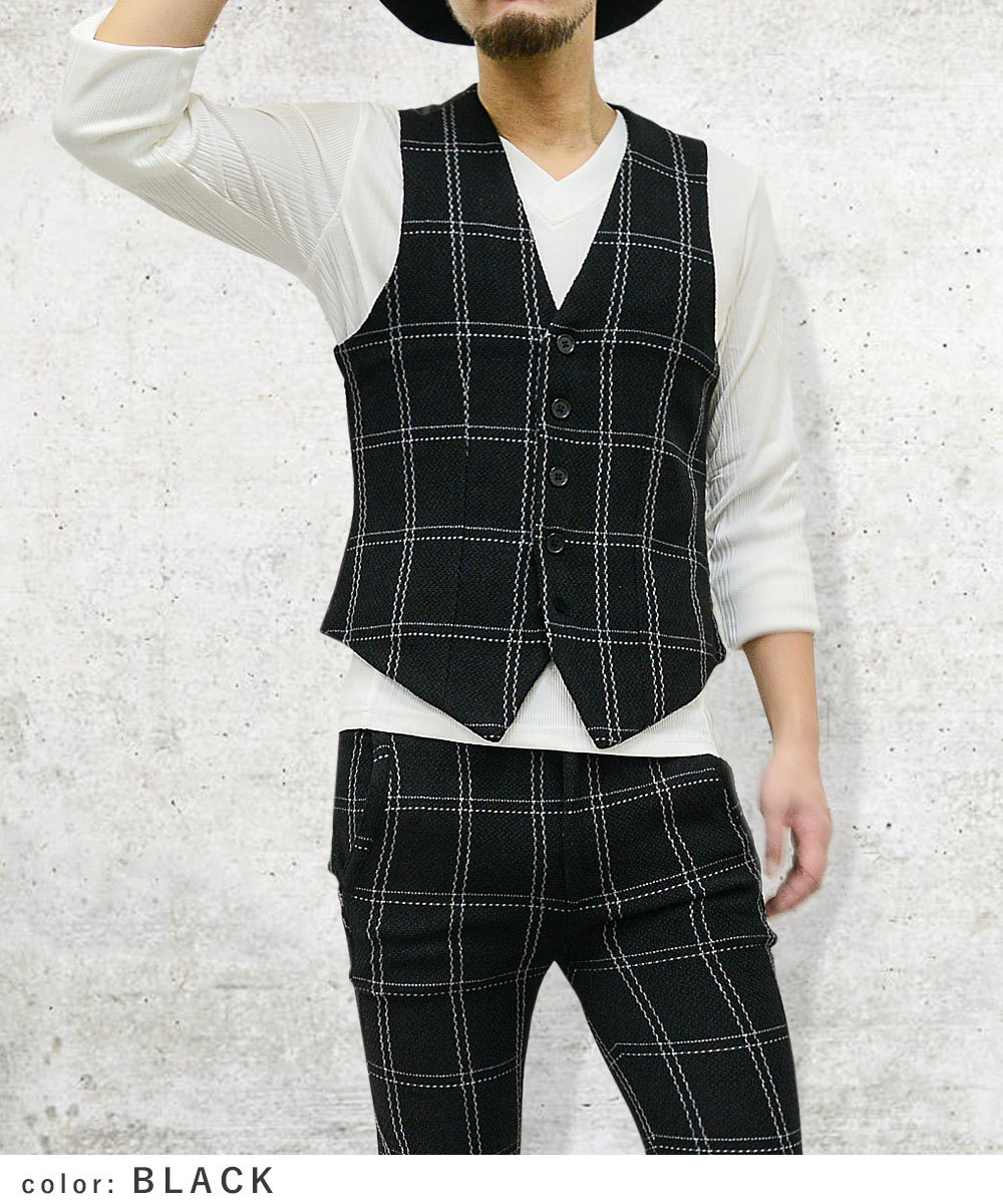 ベスト / ジレ / チェック柄 / ジャガード織り / 5つボタン /