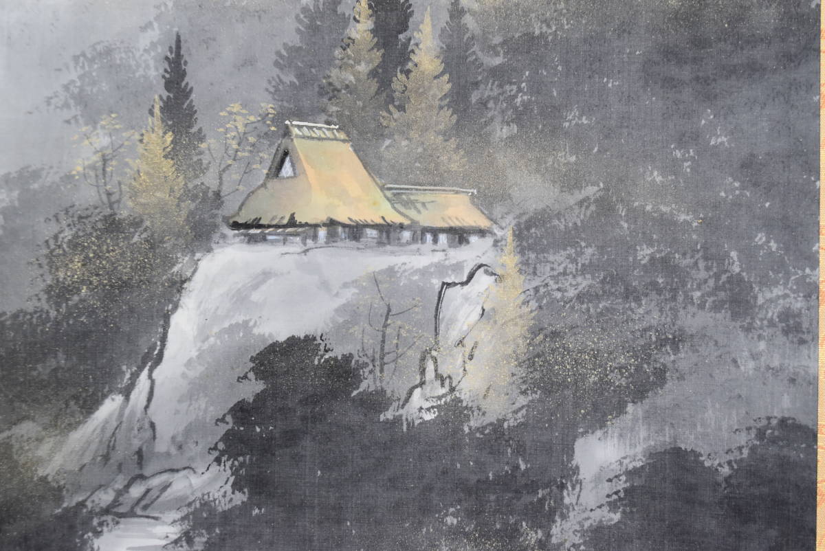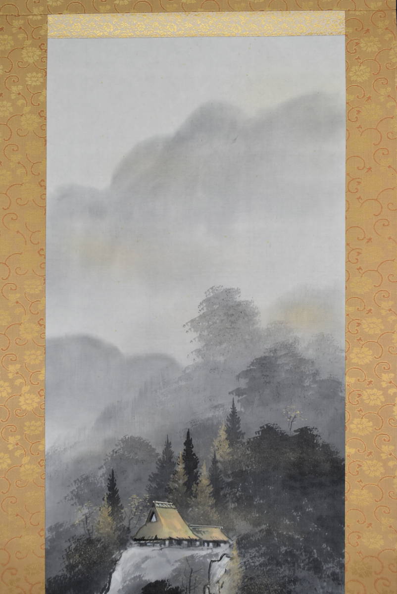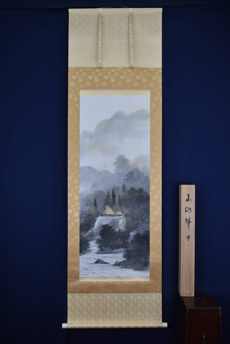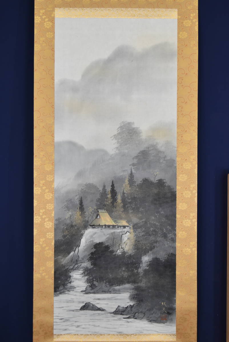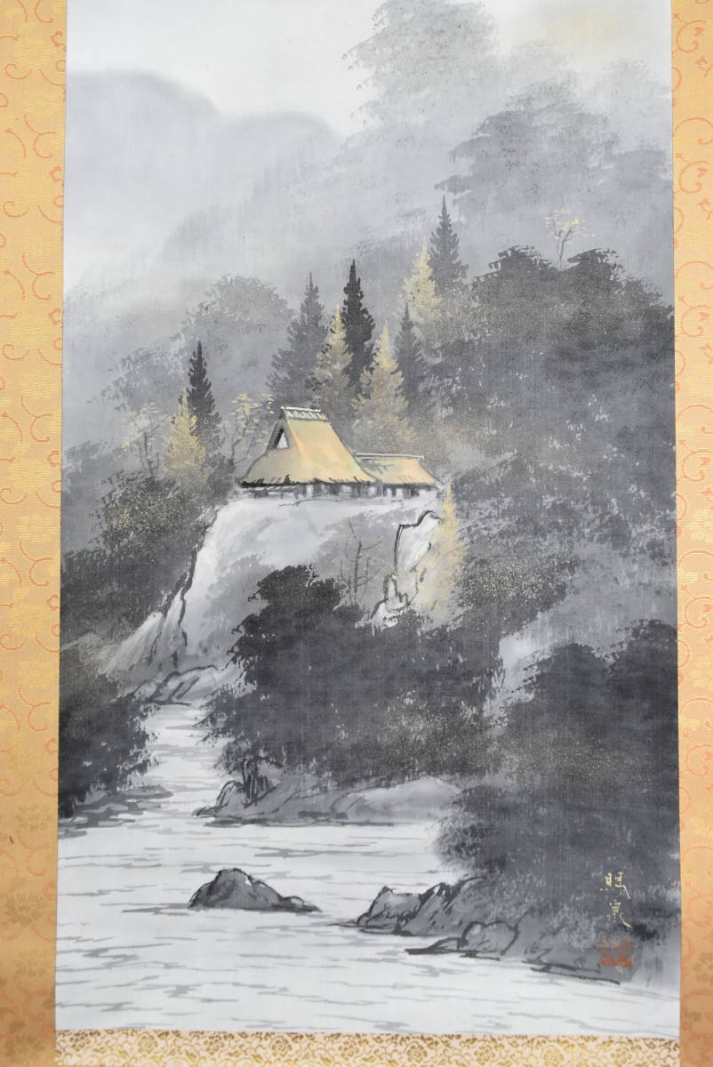 真作/郡賜泉/山村晴日図/山水図//掛軸☆宝船☆AB-317