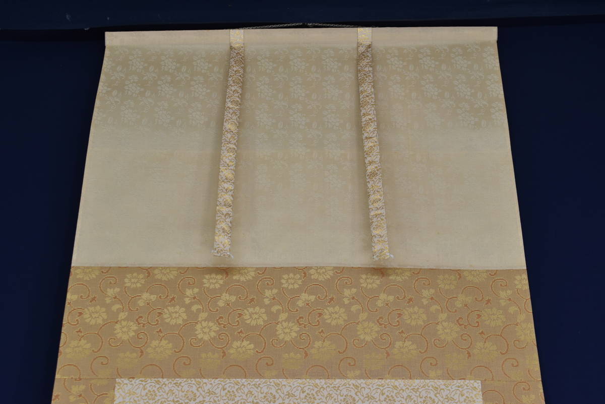 【作品状態】 本紙は絹本肉筆です。  本紙は多少の糊シミあります。表装は良好ですが軸裏に多数の糊シミあります。