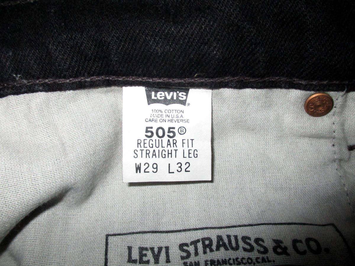 USA製☆90's LEVIS リーバイス 505 ジーンズ 黒 ブラック デニム ビンテージ W29 です。97年製、USA製です。 トップボタン裏は525です。色は黒です。