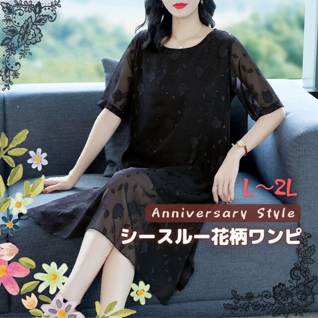 花柄シースルーのふわっとしたシフォンが大人可愛いパーティードレス。