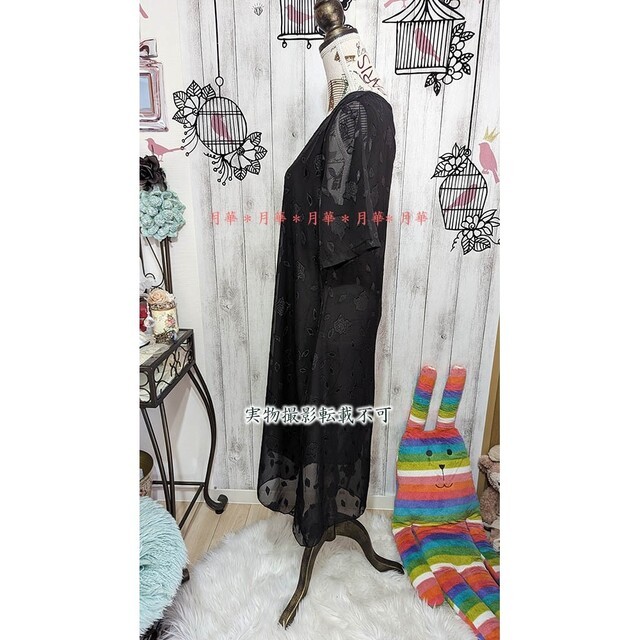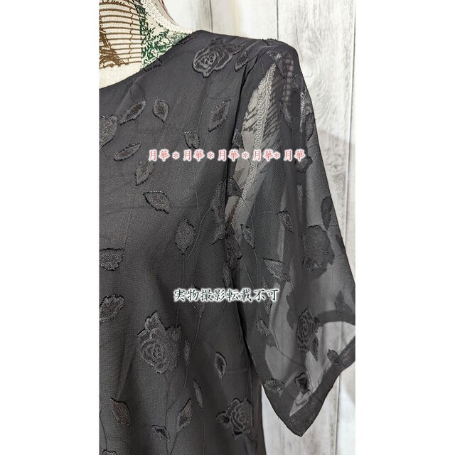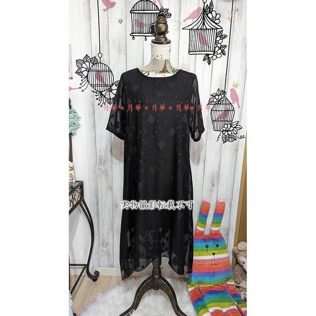 2XL(通常L~2L):着丈109(裏地88)肩幅38 バスト102 袖丈30 身長154cm程でミモレ丈(裏地は膝上)実寸計測