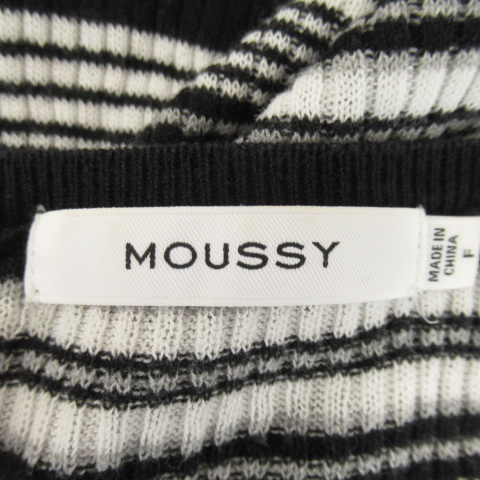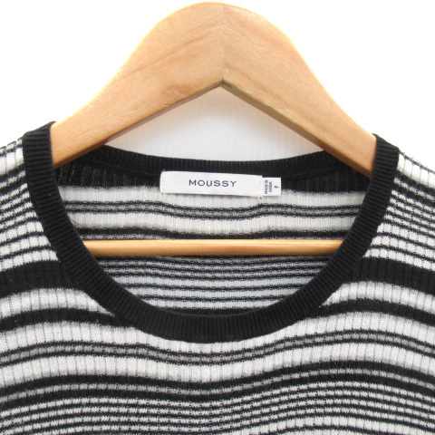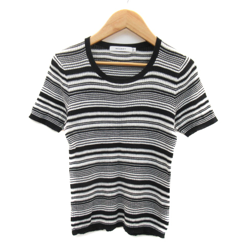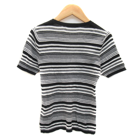 マウジー moussy ニット カットソー 半袖 Uネック ボーダー柄 F 黒 ブラック /YK13 レディース