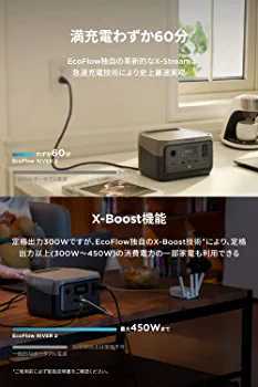 EcoFlow ポータブル電源 RIVER 2 6倍長寿命 256Wh容量 60分満充電 / リン酸鉄リチウムイオン電池 / 充放電サイクル3,000回以上 / 高耐久 / BMS電池保護機能 / 液晶大画面 / アプリ遠隔操作 / 軽量化デザイン / AC(定格300W サージ600W X-Boostで450W)/ USB-A / USB-C キャンプ 車中泊 アウトドア 電力確保 停電対策 防災グッズ (エコフロー リバー2)