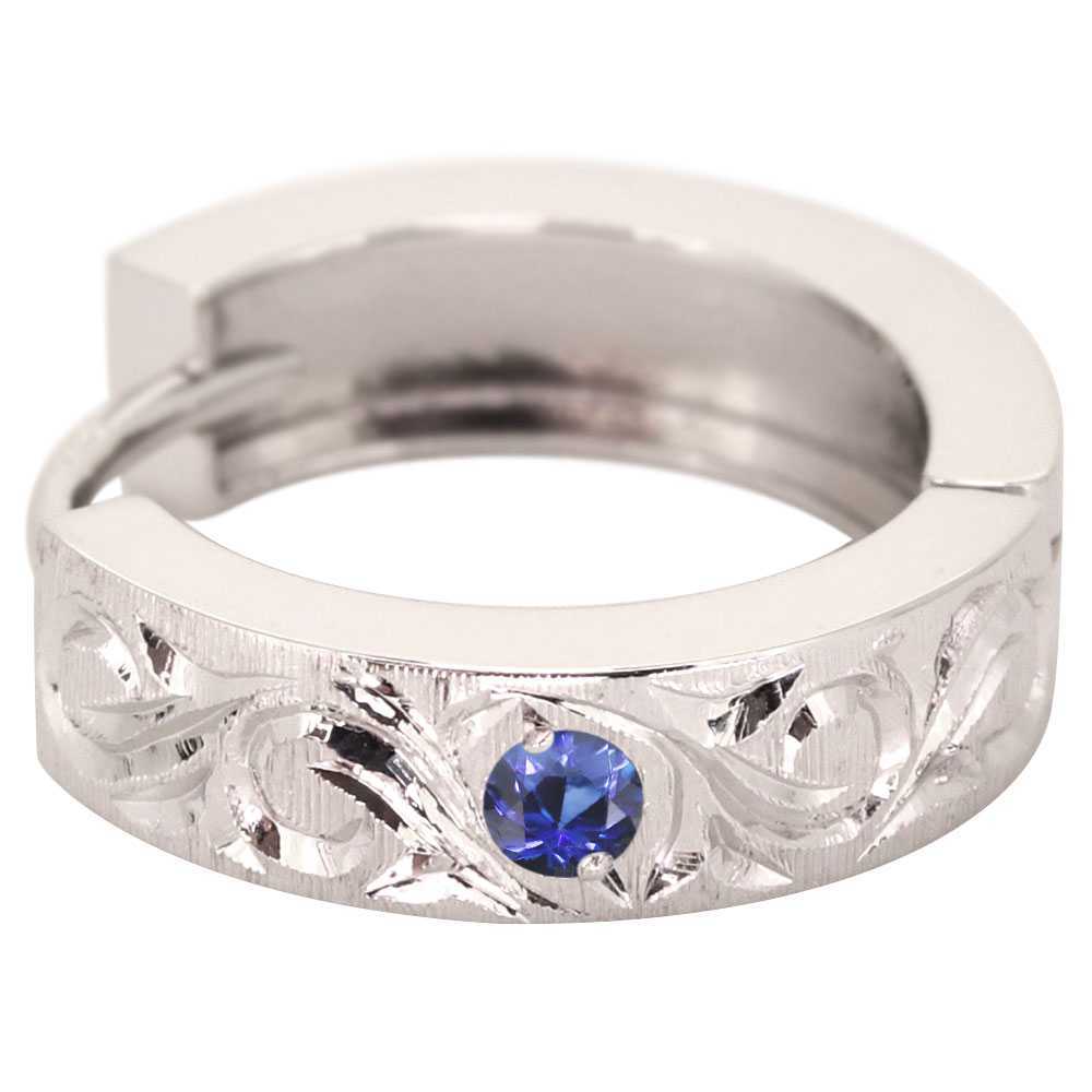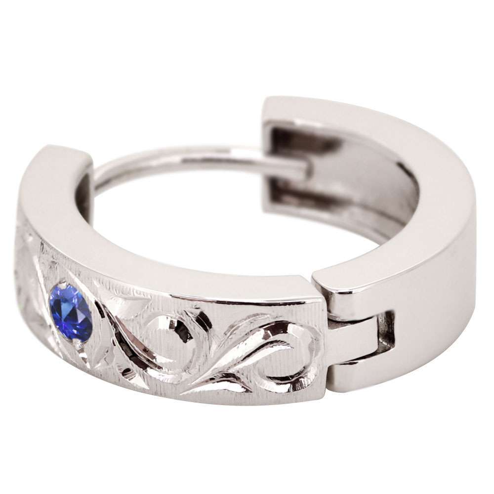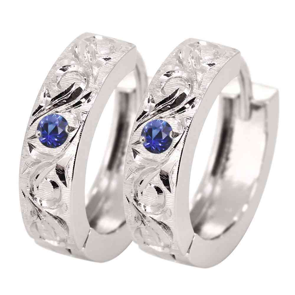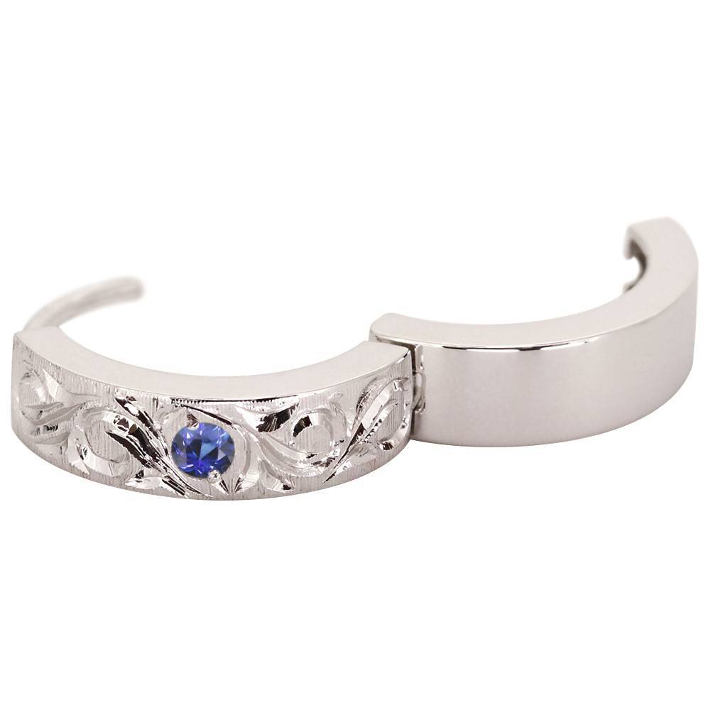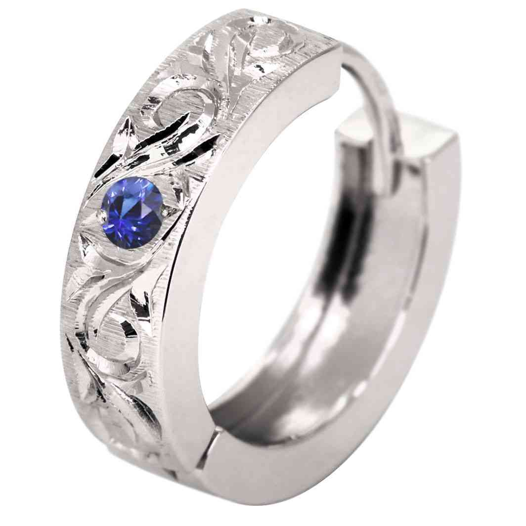 9月誕生石サファイアを使用したシルバー製の、レディースフープピアスです。