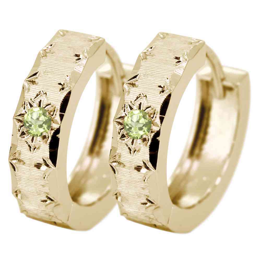 8月誕生石ペリドットを使用した10金製の、レディースフープピアスです。
