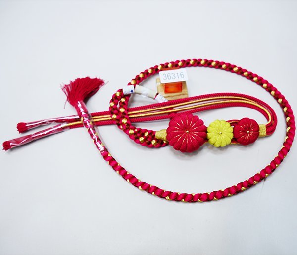| 品質 | 新品・正絹 ★大きな菊と梅の花飾りが付いた華やかな正絹帯締め ・絹 100% ★正絹とは? 本絹ともいう、まじりけのない絹糸、またはその絹糸で織った織物。 ※当店では、現物と写真画像の色、イメージに相違がないよう、撮影に工夫を凝らしておりますが、より詳しいお色説明をご希望のお客様は、 「サイト設置の質問」「メール(aji_net@khaki.plala.or.jp)」「お電話」「FAX」にて、御質問ください。 |