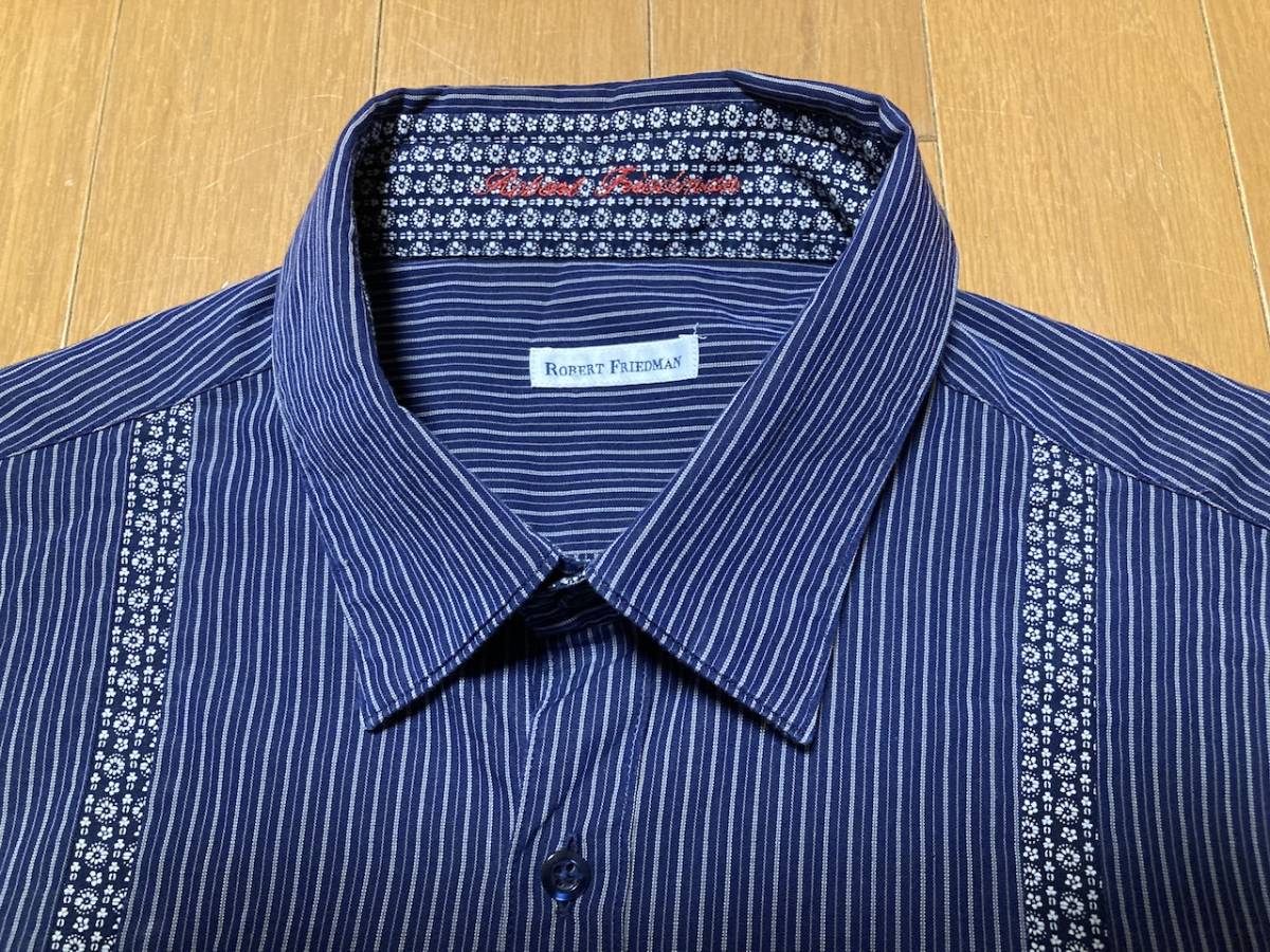 商品名:ROBERT FRIEDMAN 花柄 × ストライプ柄 長袖シャツ サイズ:表記L 平置き:肩幅43,5cm 身幅(脇下~脇下)51cm 着丈(襟付根~裾)78,5cm 袖丈(肩~袖裾)68,5cm ※素人採寸の為多少の誤差はご了承下さい。 カラー:ネイビー、ホワイト 状態:(株)小田急百貨店。MADE IN ITALY。コットン100%。目立ったダメージ等無く良い方だと思います。 発送方法:レターパックプラス(配達記録付600円)orレターパックライト(配達記録なし430円) ※古着になりますので神経質な方、ご理解の無い方の御入札はお控え下さい。送料、振込手数料は落札者様の御負担となります。ノークレーム、ノーリターンでお願い致します。
