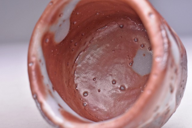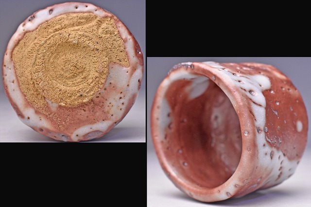 玉置保夫 ★ 赤志野 ぐい呑 ★ 共箱 ★ 希少な赤志野で釉景の美しい逸品 ★ 岐阜県無形文化財保持者★ 酒器 玉山窯