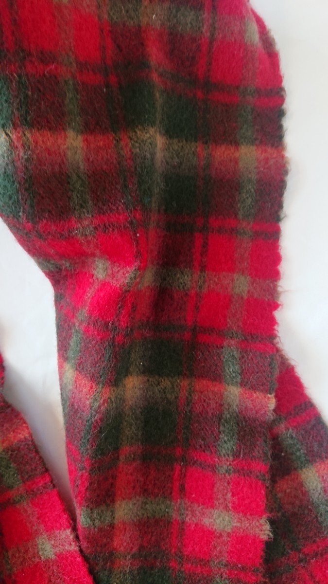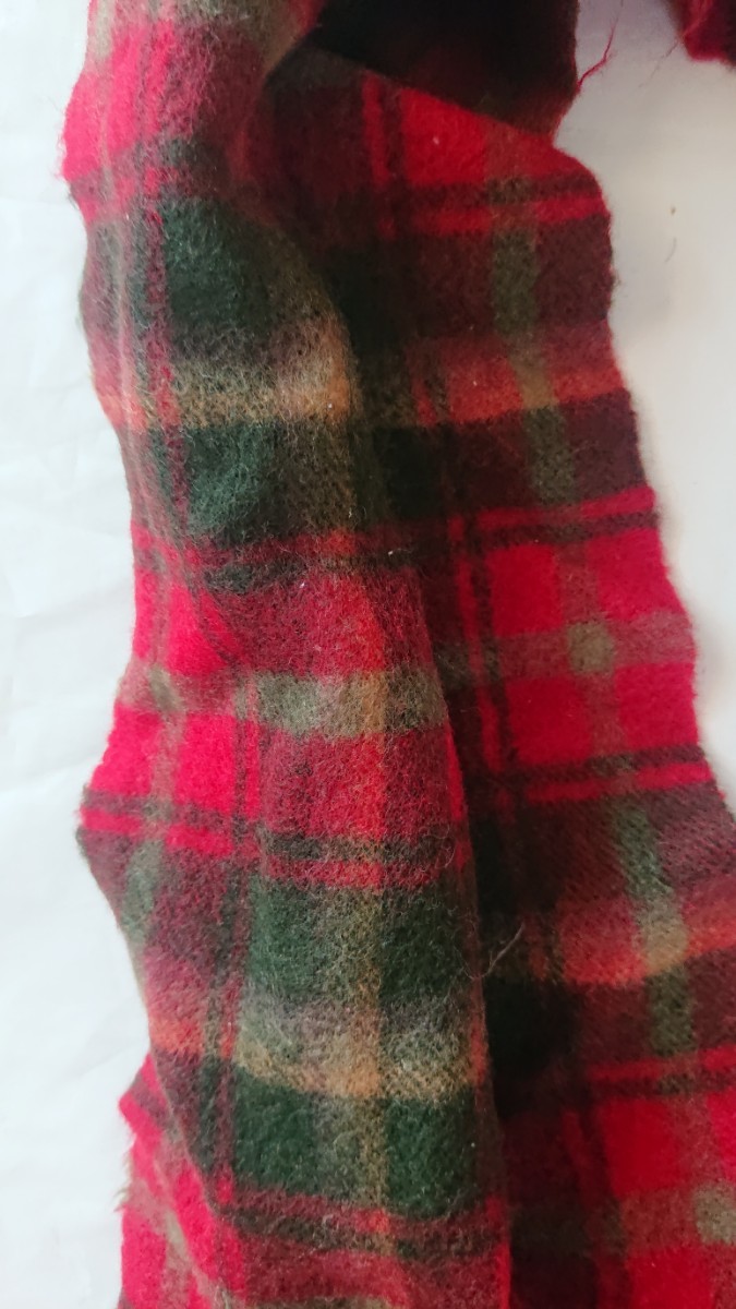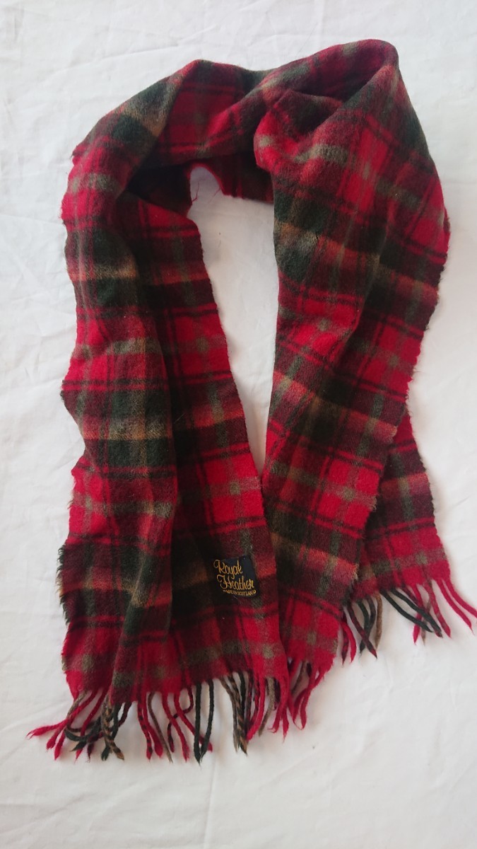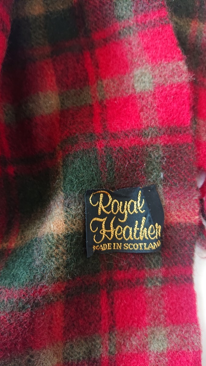 ロイヤルヘザーのマフラーです。赤系のチェックになります。長さは114cmです。深みのある赤がとても綺麗です。